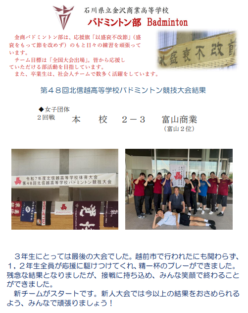 バドミントン部 学校対抗戦、JOC・中部日本大会予選