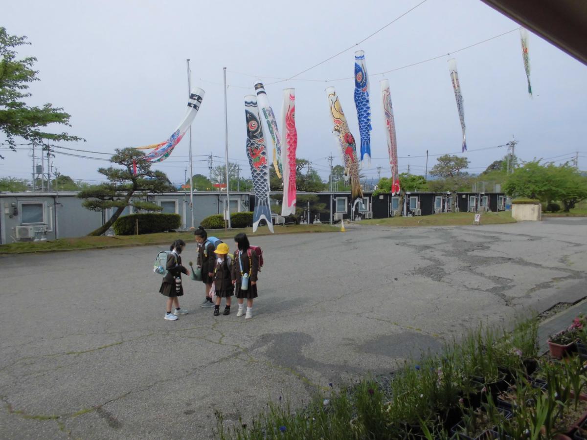 午後からは全校児童で集会所交流でした。集会所に行く前に、学校に届いた炊き出しの案内を、仮設住宅にポストイン!みんなで楽しんで取り組むことができました!