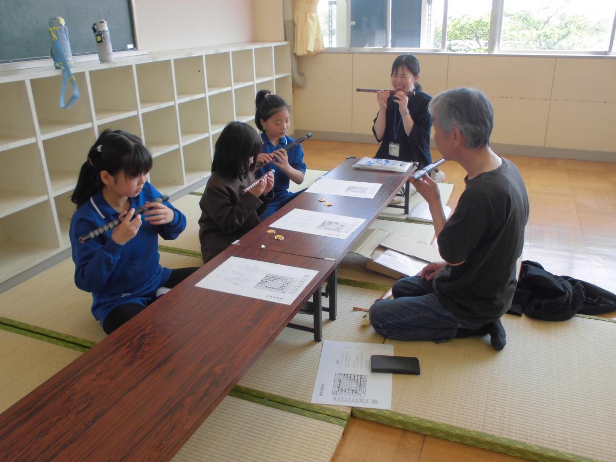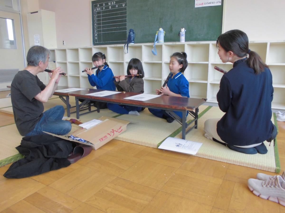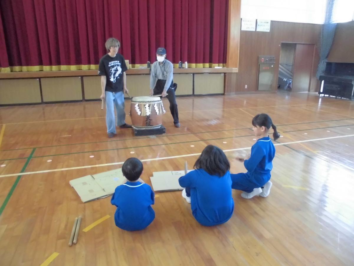 5限目には校内からいろいろな声や音が。体育館では、3・5年生がプレルボールに取り組んでいました。聞こえた声は運動を楽しむ声。3階音楽室からは、1・2年生が和太鼓を使って学習中。交代で太鼓の響きを確かめ楽しみながら学ぶ姿が見られました。校内が子どもたちの声や音でいっぱいに。何とも言えない幸せただよう時間でした、花丸◎!
