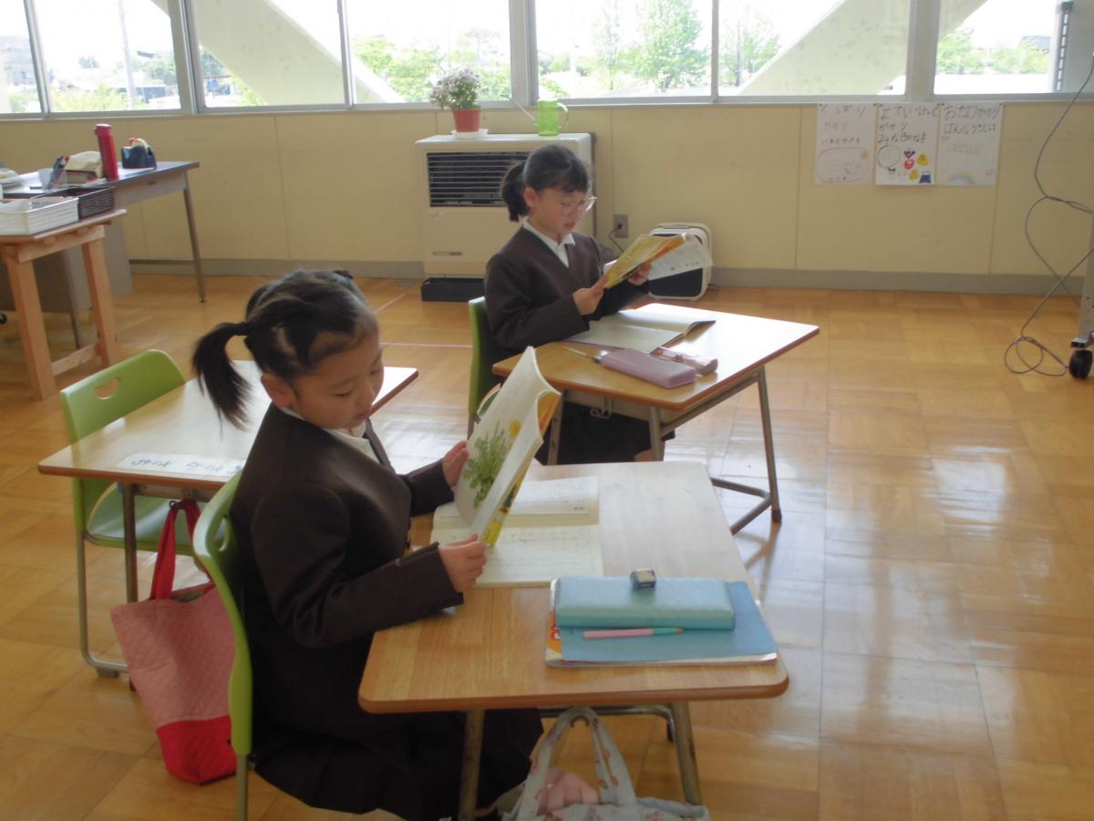 朝読書の様子を見に行くと、1・2年生は図書室で読書を楽しんでいました。静かに本に夢中になっていました、花丸◎!