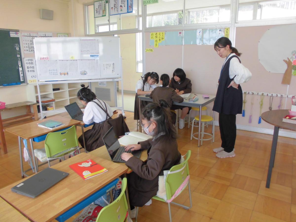 1限目の様子を見に行くと、3年生は国語、明日行うオンライン交流学習の発表練習をしていました。明日の交流が楽しみです、花丸◎!5年生も国語、単元は「自然環境を守るために」。グラフや表を用いて考えを書く学習です。新しいクロームブックを使って、ワークシートに自分の考えを書きすすめる姿が見られました、花丸◎!