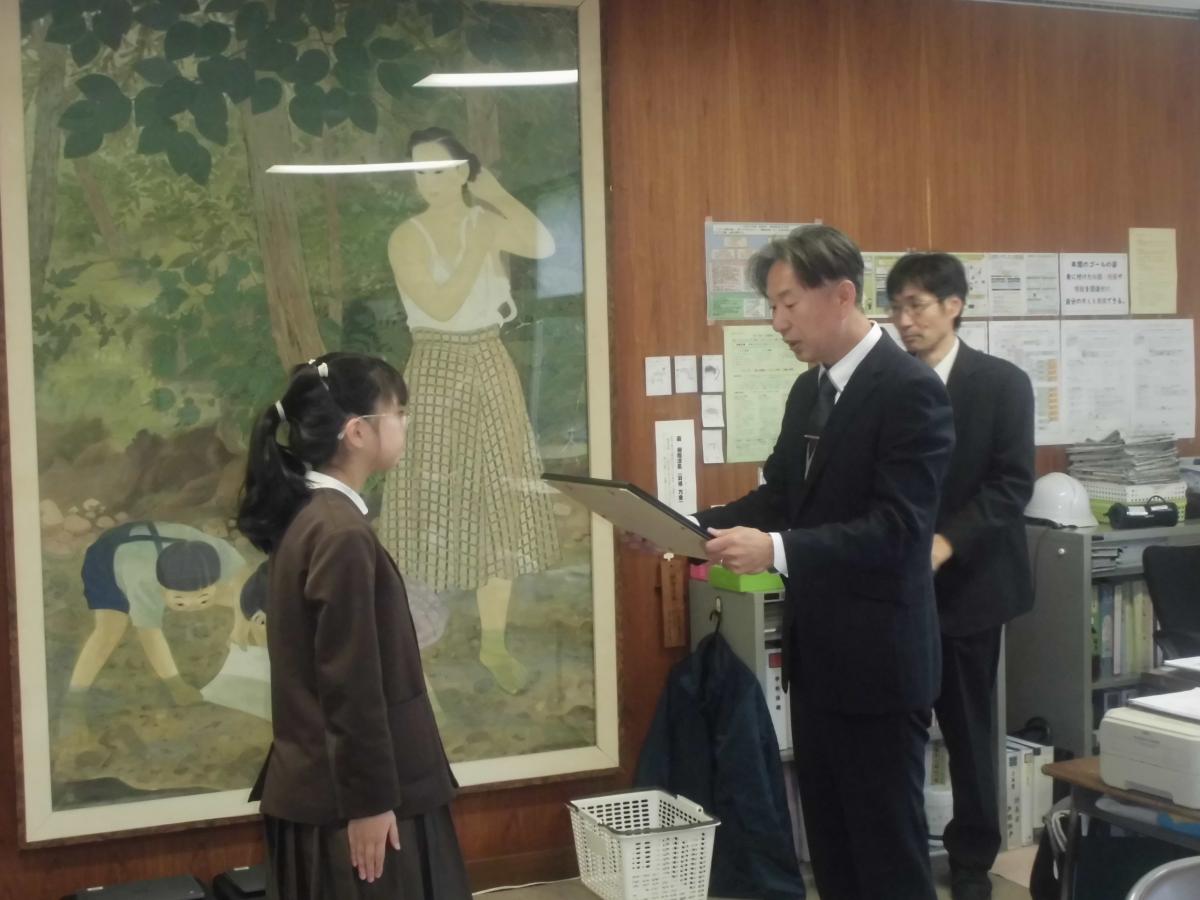 給食後、納賞がありました。珠洲ミニバス教室でがんばっている3年生が、先日の週末に行われた大会で、見事優勝した報告でした。他校の児童と共に汗を流すことも大切だなぁと感じながら、賞状を披露しました。