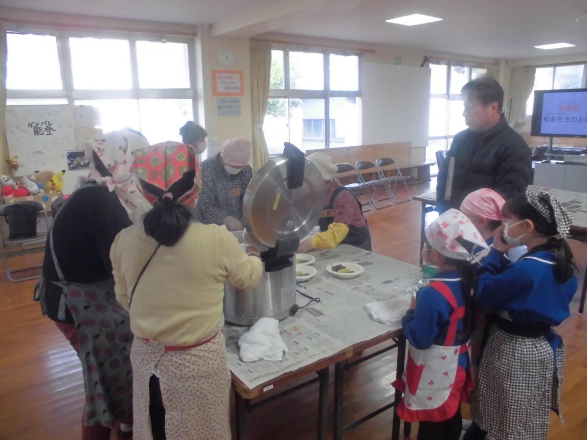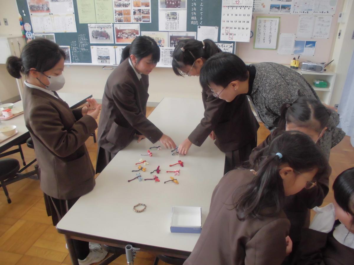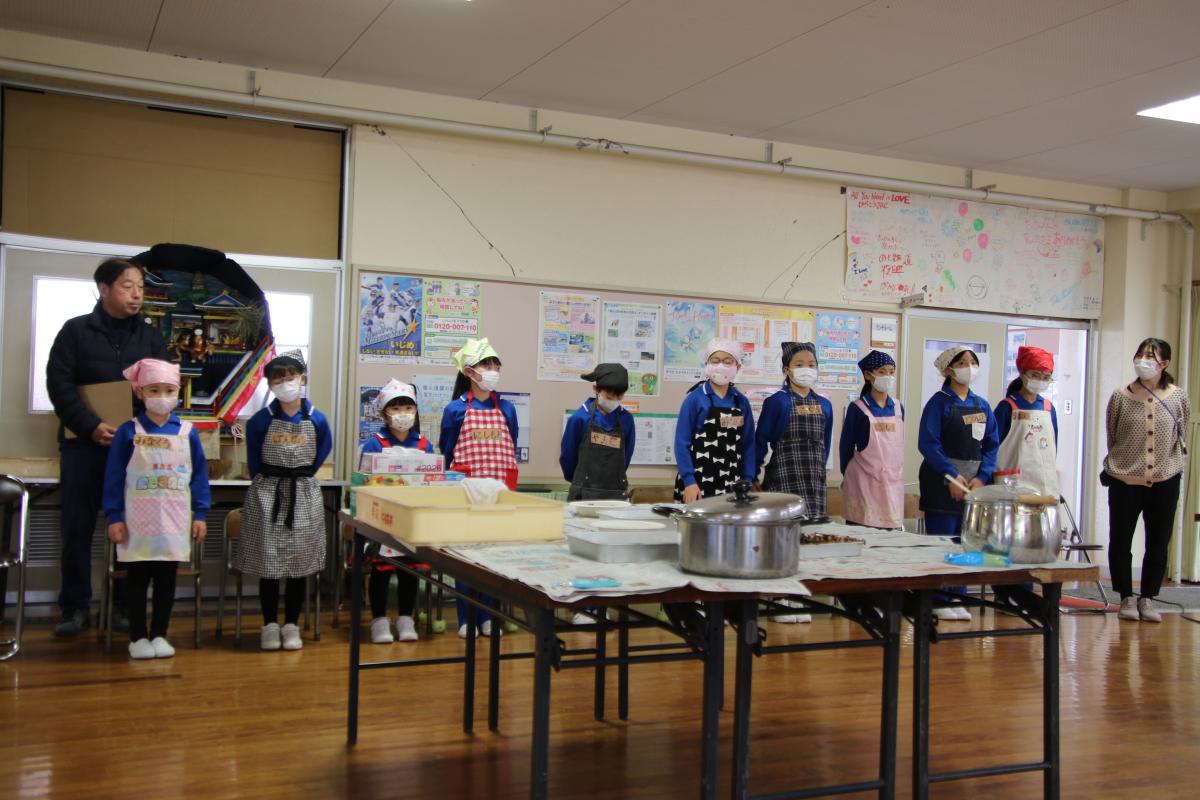6限目、5年生は後期クラブが発足しました。今回は、読み聞かせボランティアでもある大句さんにご来校いただき、干し柿づくりを体験しました。果物の皮をむくことが初めての児童も多かったのですが、大句さんに教えていただきながら、なんとか皮を剥いた柿を干すところまでできました。あとはつるして乾燥させて、美味しい干し柿ができるのを待つだけです。