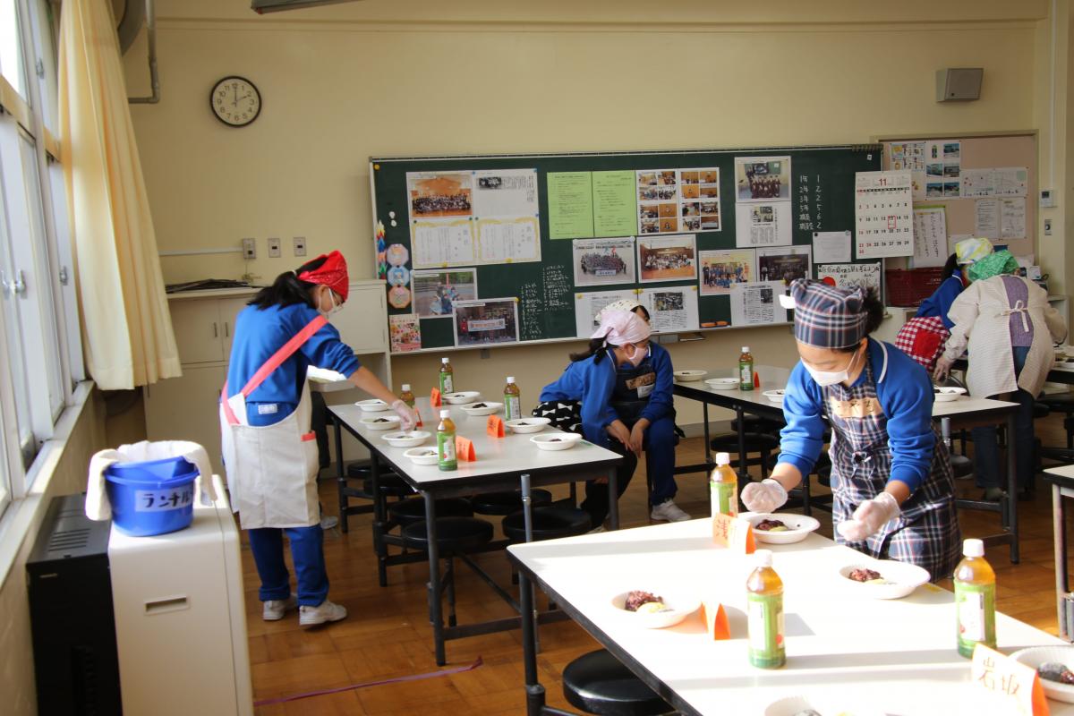 その後は、子どもたちと一緒に給食を食べていただき、子どもたちとの会話も楽しんでいただきました。永田選手に聞くと、お一人で学校を訪問してのスポーツ教室は初めてだったこと、今朝からずっと緊張していることなども教えていただきました。初めてにしてはとっても楽しい時間だったこともお伝えしました。
