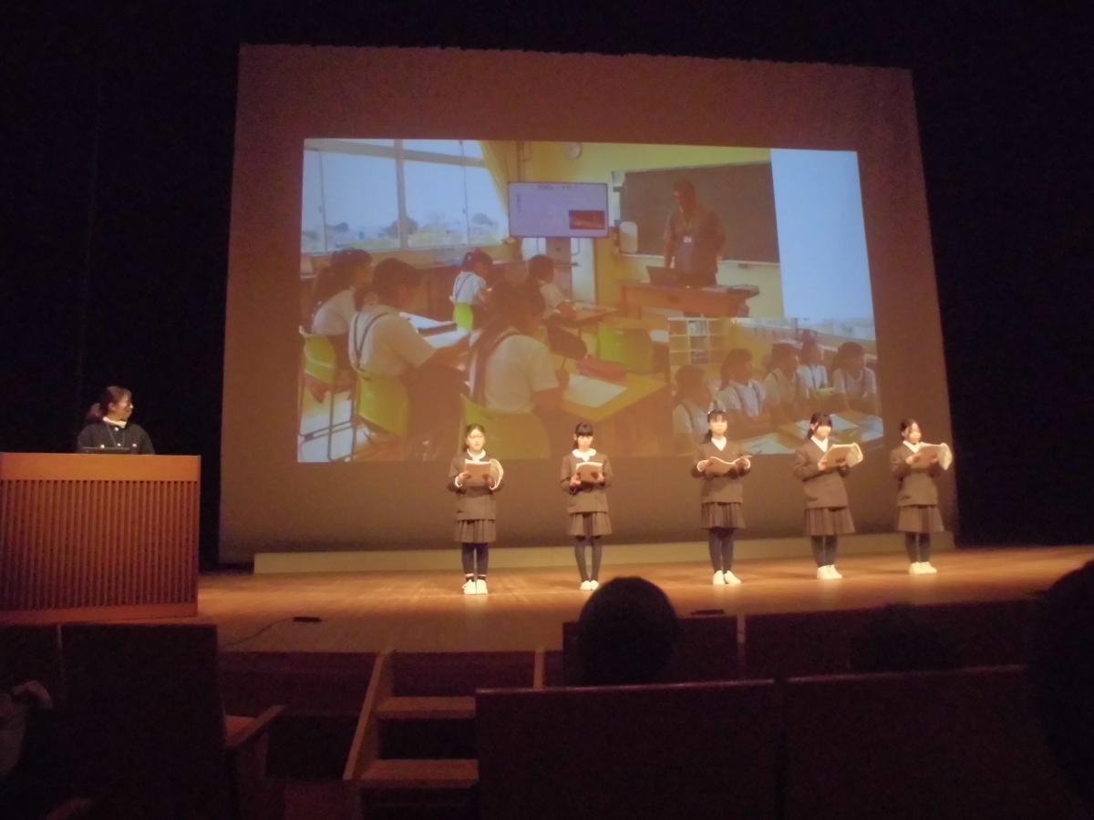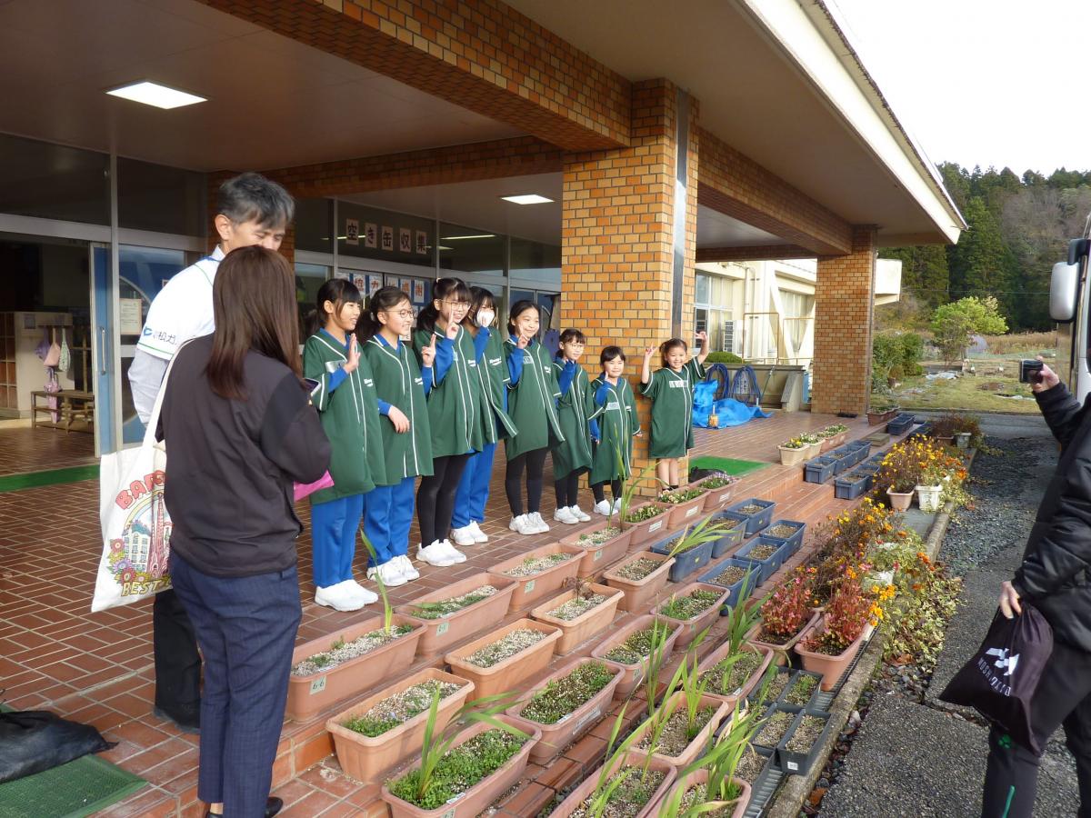 最後は両校の校歌を演奏して下さり、それに合わせて歌うこともできました。続けて、各校の児童代表から花束のプレゼント。一緒に今日の公演の感想も具体的にお伝えできました、花丸◎!