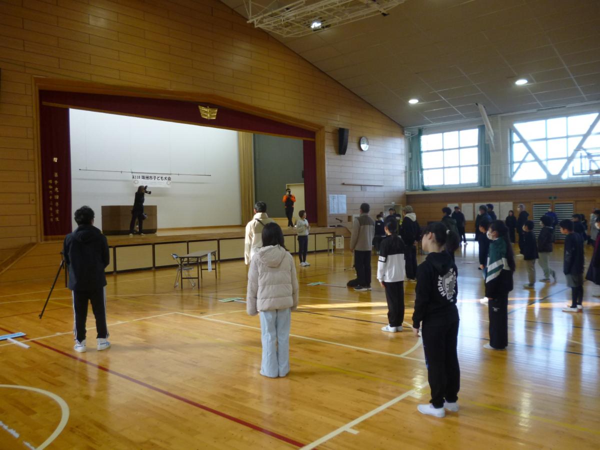 午後2時からふれあい集会ですが、午後1時30分前から、八幡太鼓・龍笛の指導者の皆さんがご来校され、みなさんが来る前に衣装をつけて最終練習を行いました。子どもたちからは、集会が始まる緊張感を楽しむ姿が見られました。実にたのもしい姿でした!