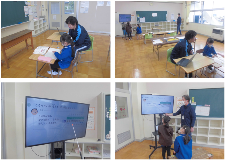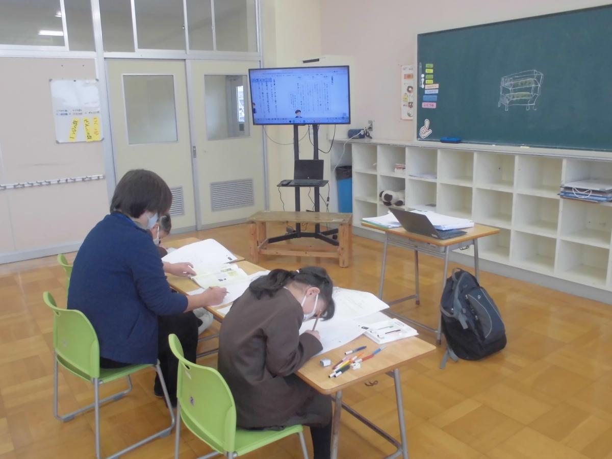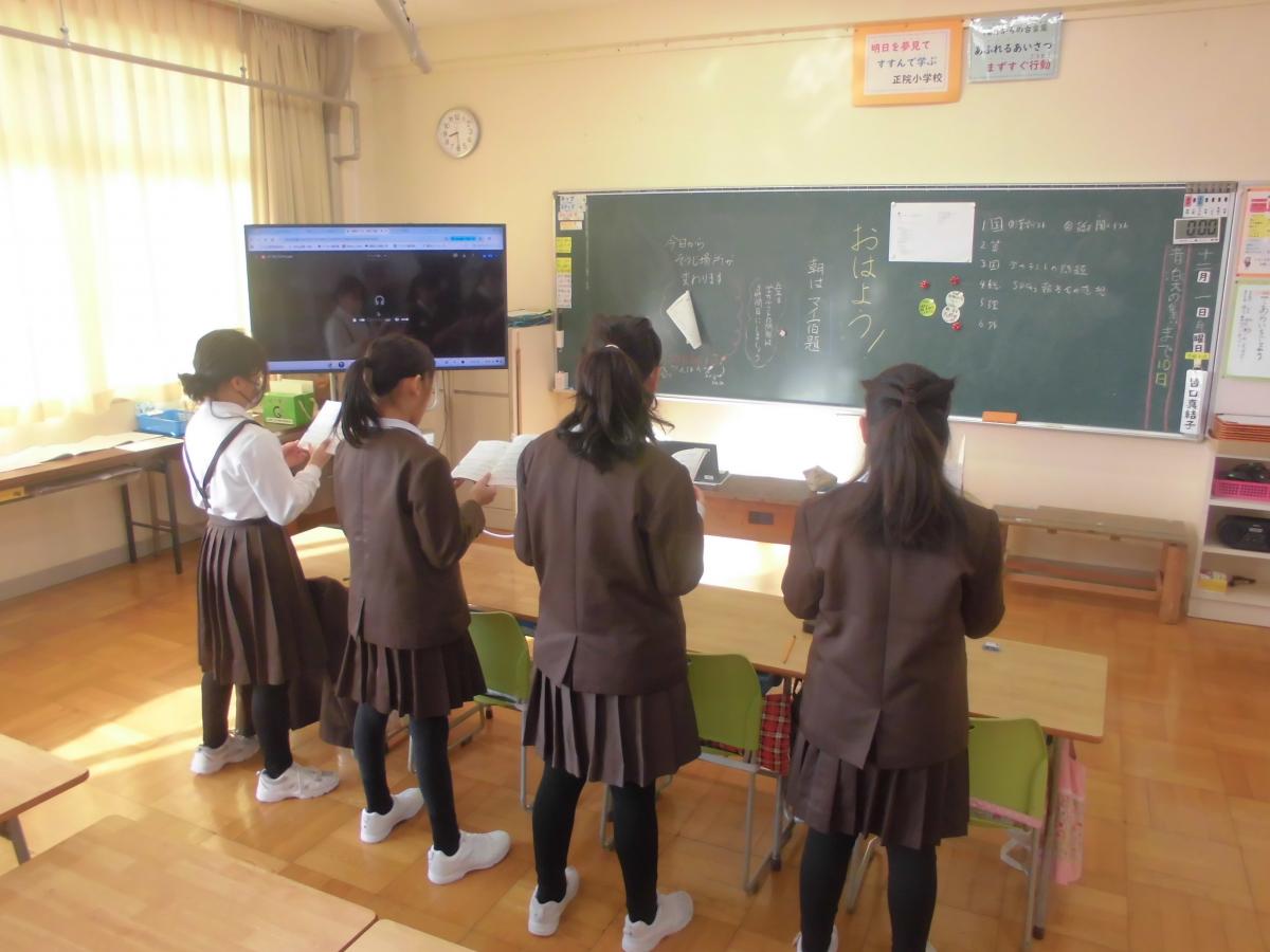 2限目に、1年生は国語科でオンライン交流学習を行いました。カタカナの単元で、いろいろなクイズをみんなで考える時間でした。いろいろなクイズを考え、答え合う楽しい交流学習となりました!