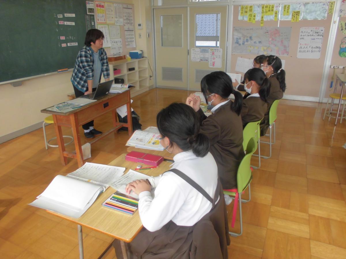 3限目の様子を見に行くと、1・2年生は算数、1年生は答えが10を超えるたし算のテストを行っていました。1つ1つの問題を確かめながらスラスラ書く姿が見られました。2年生はかけ算、九九の学習に入っています。今は5の段。かけ算の意味を式で確認していました、花丸◎!3年生は社会科、「店ではたらく人々の仕事」の学習です。先日スーパー大丸さんを訪問したくさん学んだことをまとめていました。大丸さんへのお手紙もよくかけていました、花丸◎!5年生も社会、「自動車工業のさかんな地域」の学習です。日本を支える大切な自動車産業、自動車がなぜ外国で現地生産されるのかについて考えていました。自分の考えをすすんで説明する姿が見られました、これも花丸◎!