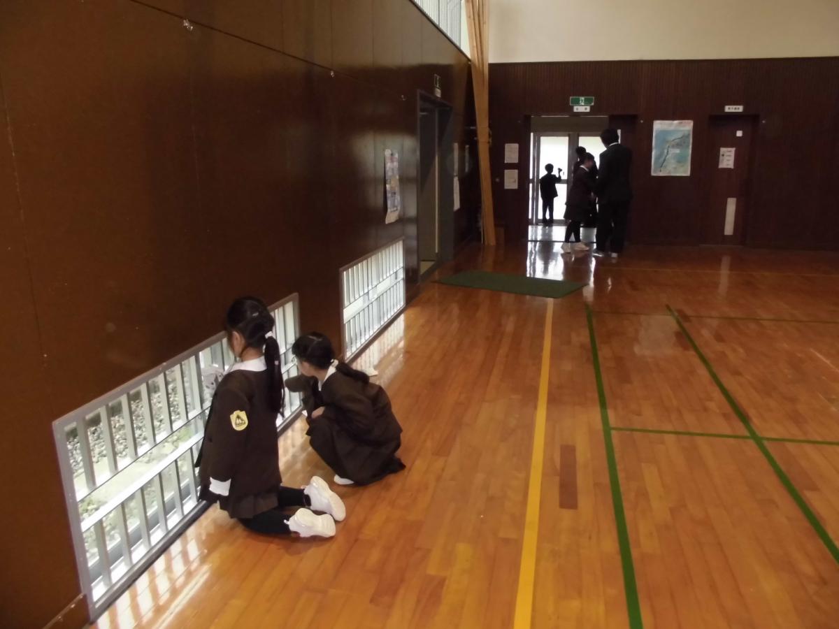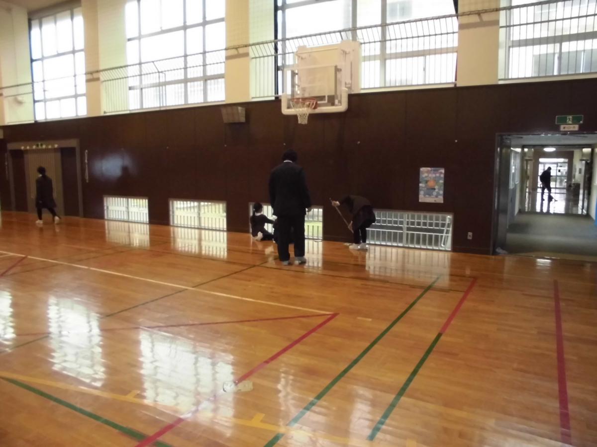 午後は、まず大掃除。10人が2班に分かれて、体育館と玄関掃除に取り組みました。先生方とも協力しながら、普段しない場所の拭きそうじに取り組む様子も。お世話になった校舎をきれいにして冬休みを迎えられそうです!