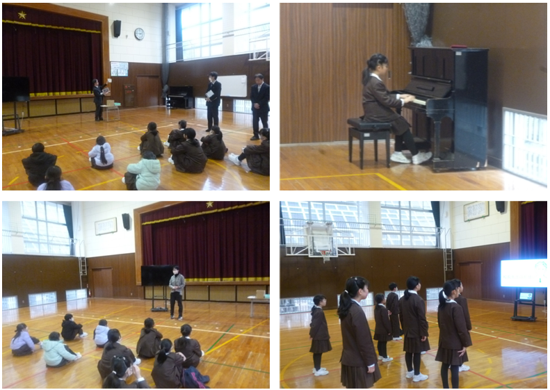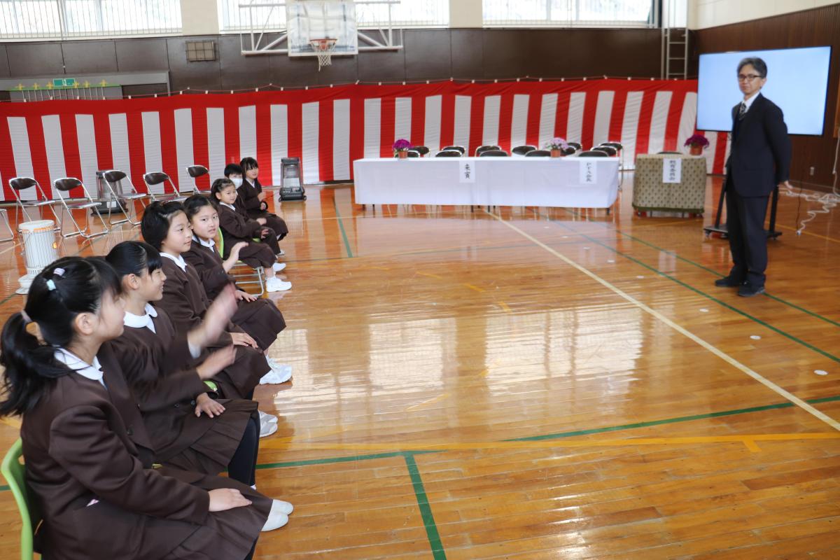 ②校長先生のお話では、⑴12月の振り返り、⑵12月の合言葉、⑶2学期・3つの約束の3つのお話をしました⑴12月の振り返りでは、写真で12月を振り返り、たくさんの学びがあったことを確認しました。⑵12月の合言葉「あふれるあいさつ まずすぐ行動」について、今後も挨拶は自分から一往復半に取り組むこと・自分からすすんでよいと思う行動をすることを確認しました。⑶2学期・3つの約束については、授業がよく分かるための取組、集合・交流学習の取組、規則正しい生活への取組について子どもたちと共に振り返りました。3学期も12月に行った学校評価アンケート結果をもとに改善策をすすめてまいります。