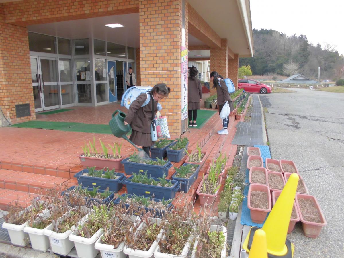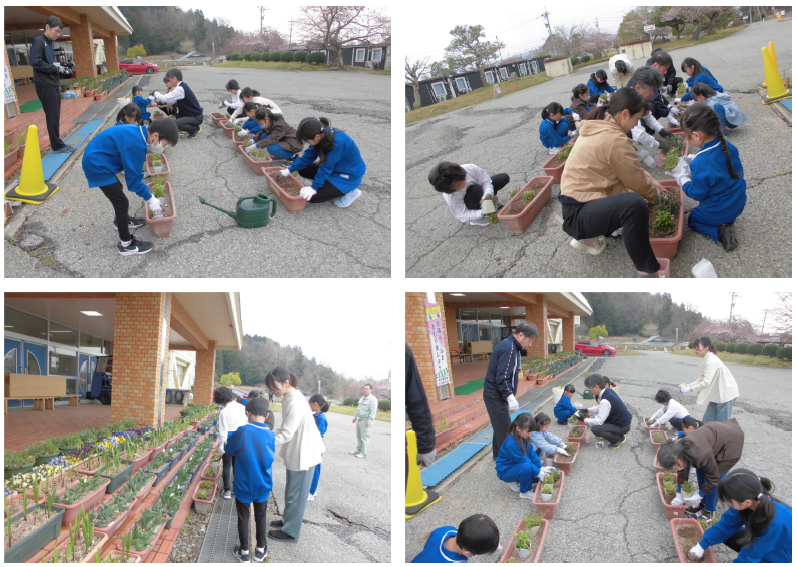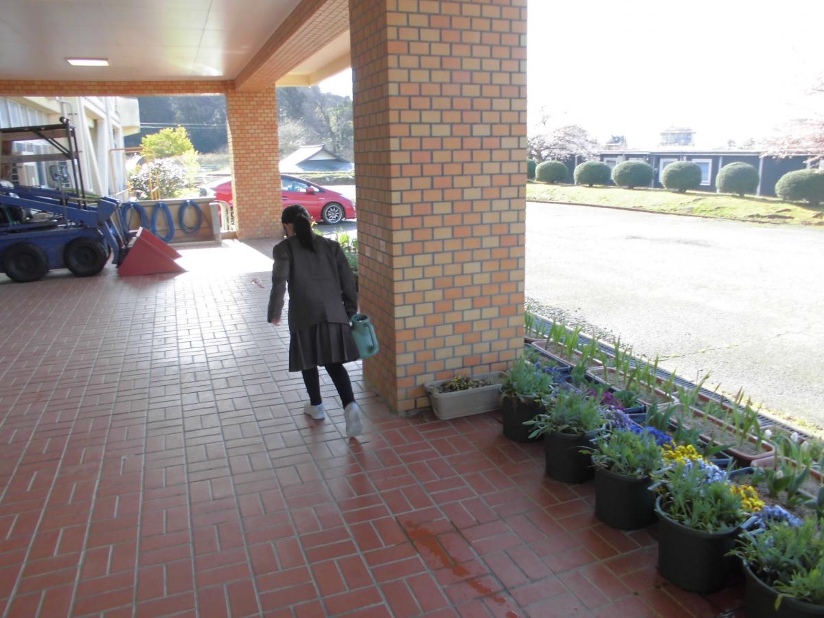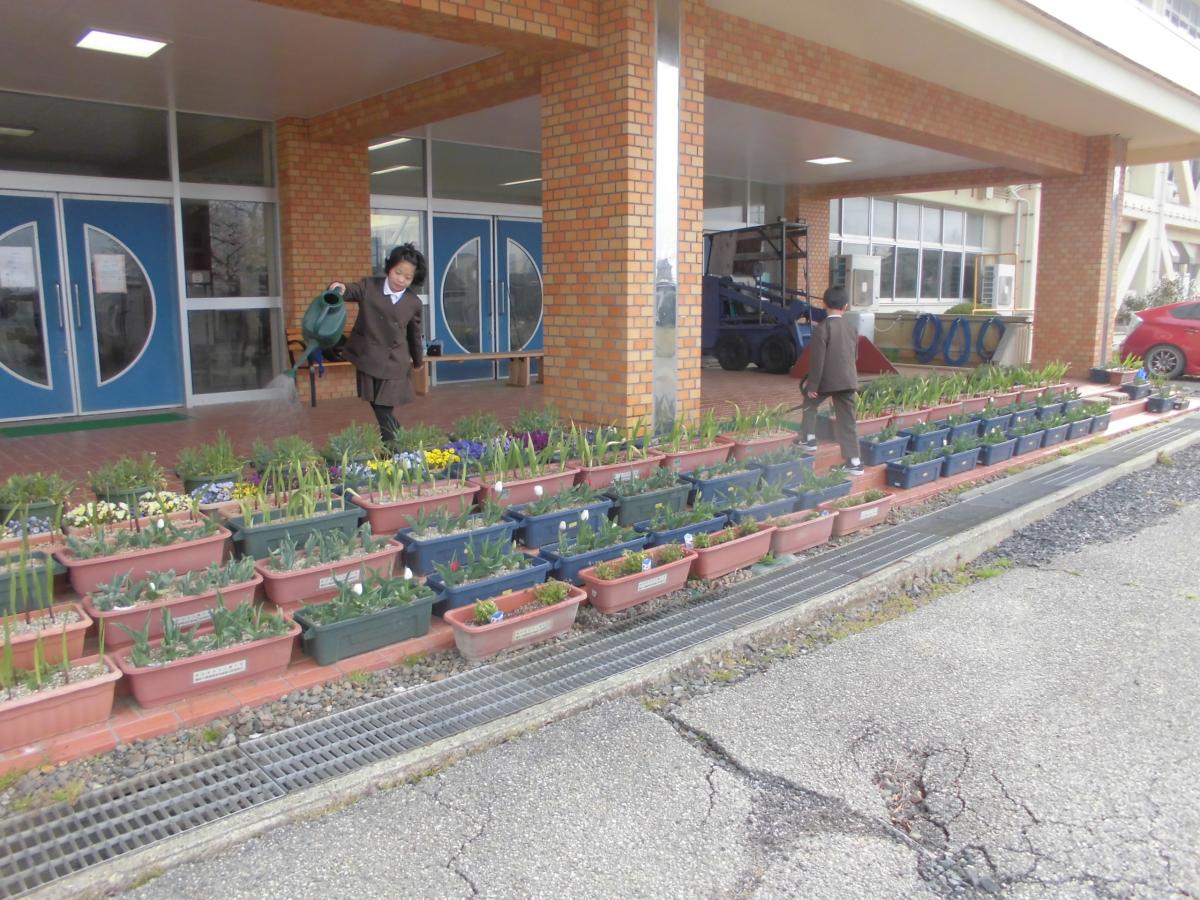 24日(水)、小雨の降る朝となりました。78日あった2学期も今日が最後の日となりました。玄関のプランターの花も、寒さに負けずに花をつけてくれているものもあります。そんな中今日も子どもたちは全員元気に登校してくれました、花丸◎!