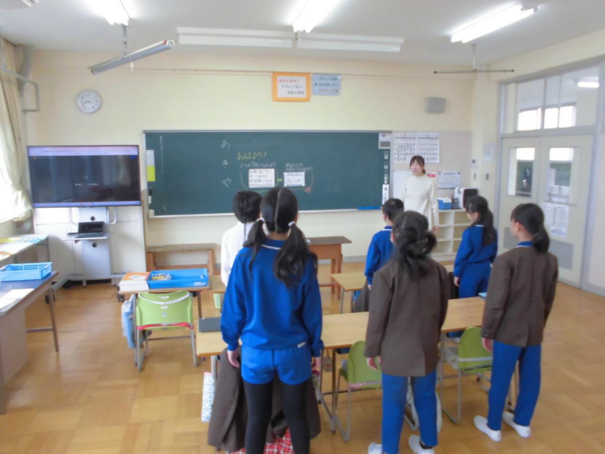 みんな別れを惜しみながら帰っていく様子が見られました。地球市民学習様、松井先生や学生の皆様、冬休みの貴重な時間を本校児童との時間にあてていただいたことに深く感謝いたします。