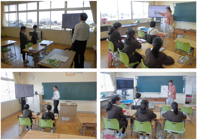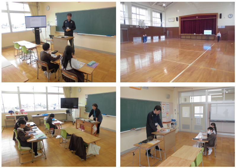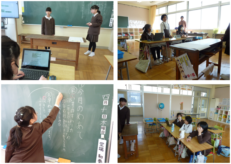 早い児童は8時には登校、みんなが来る9時30分ごろまでは職員室で、担任の先生にご指導いただきながら、冬休みの宿題に取り組んでいました。9時過ぎには、松井准教授が来校され、遅れて5名の学生の皆さんが来校されました。9時30分過ぎには他の児童や中学生が来校。10時より、松井先生や学生の皆さんも加わっての地球市民学習さんとのオンライン交流を行いました。