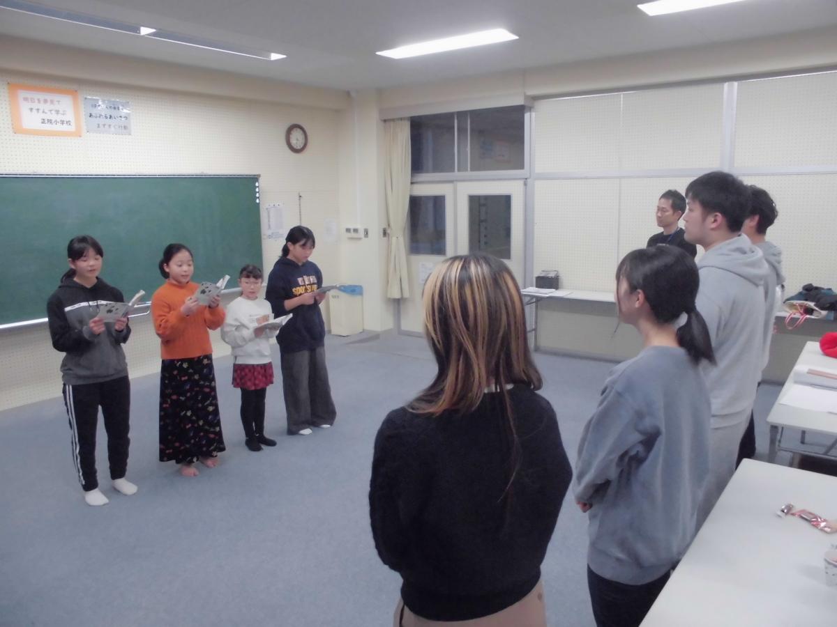 みんな別れを惜しみながら帰っていく様子が見られました。地球市民学習様、松井先生や学生の皆様、冬休みの貴重な時間を本校児童との時間にあてていただいたことに深く感謝いたします。