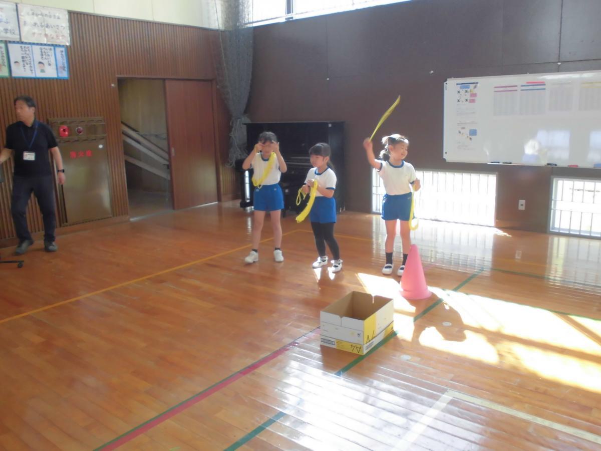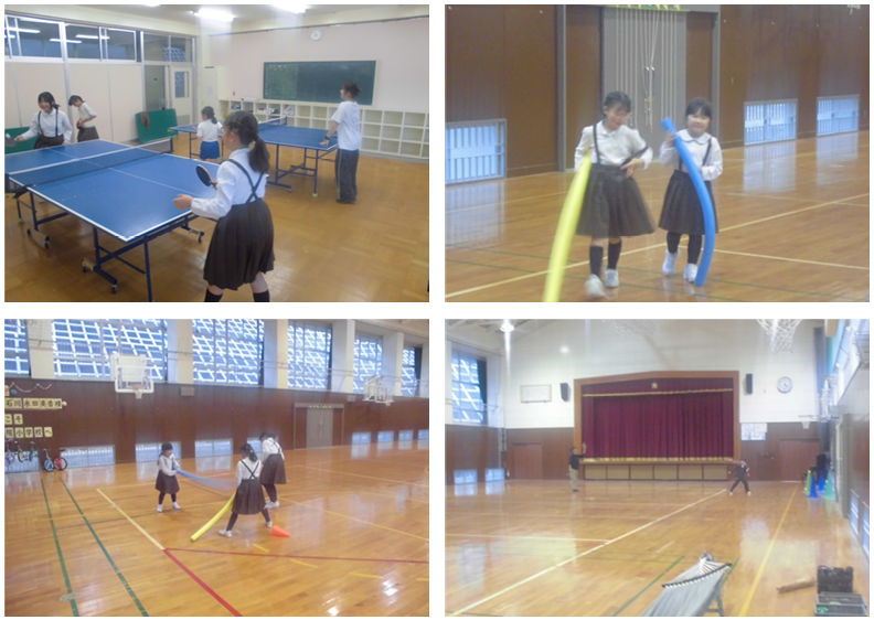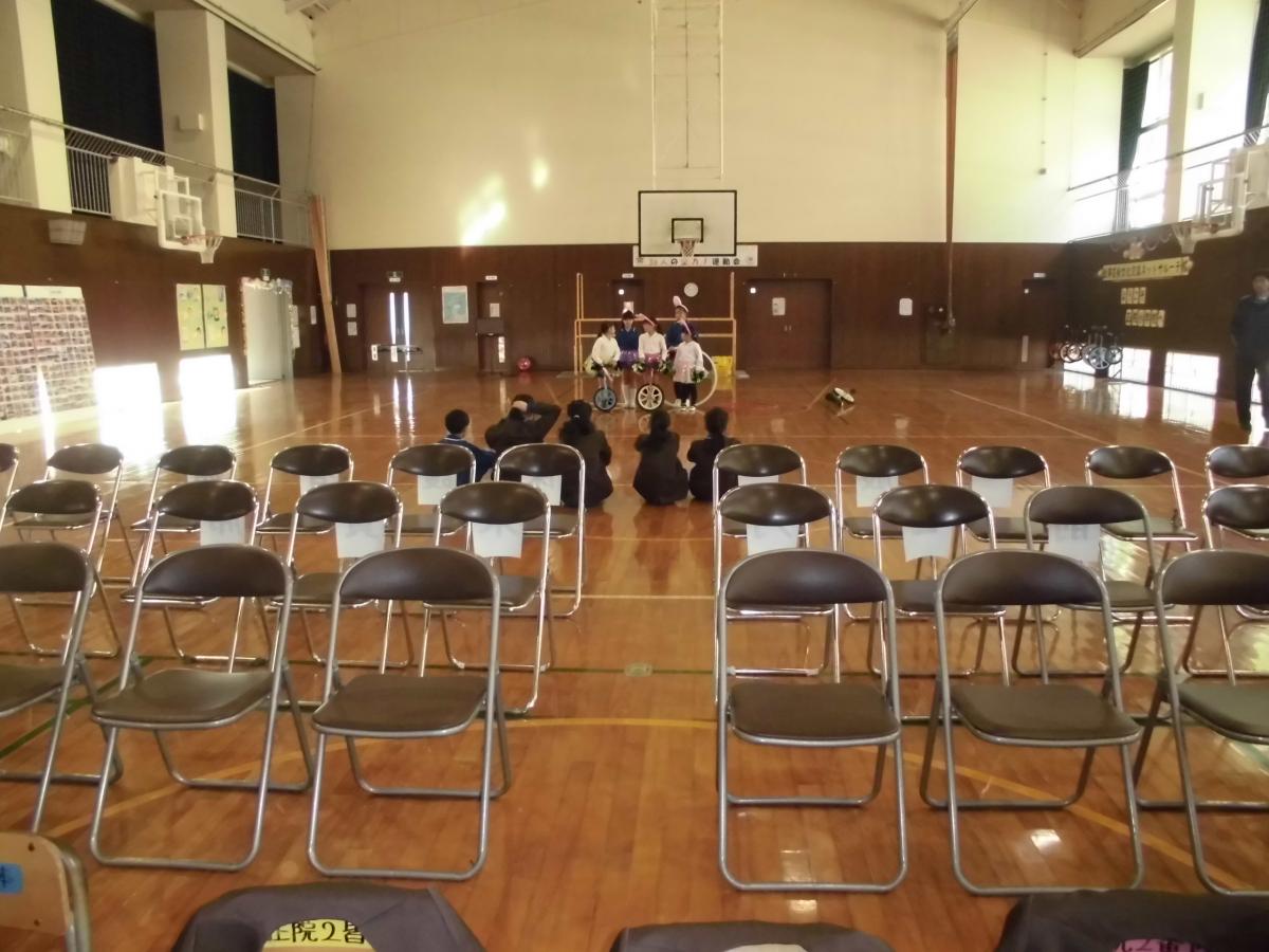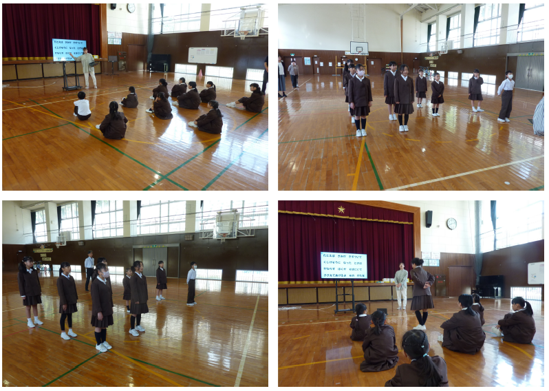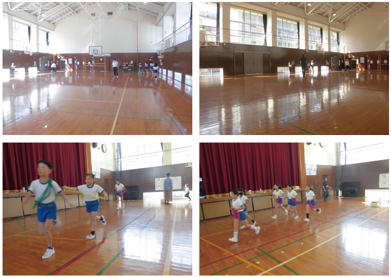 3限目が始まる前に、職員で午後のコンサートの準備を終えると、1・2年生が体育館の半分を使って、元気に体育の学習を始めていました、花丸◎!