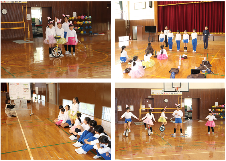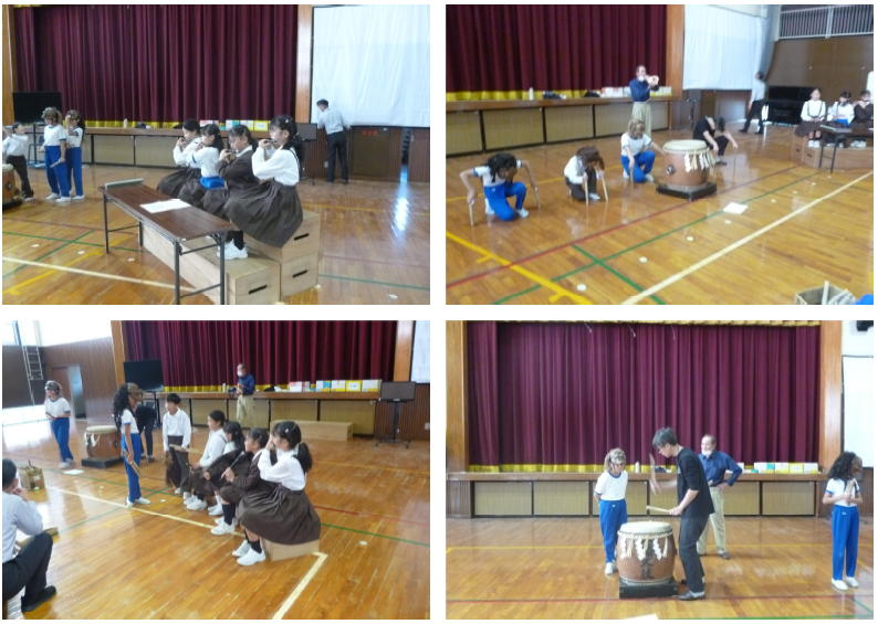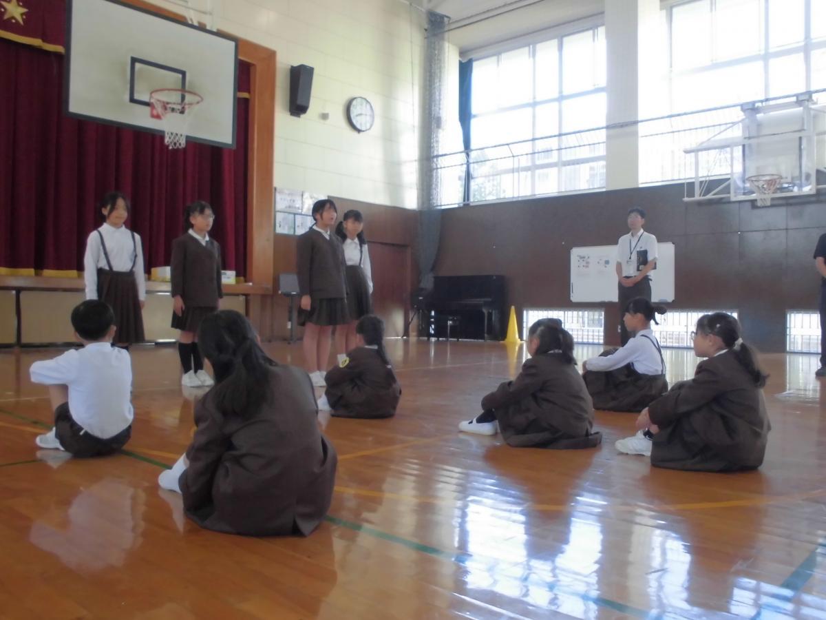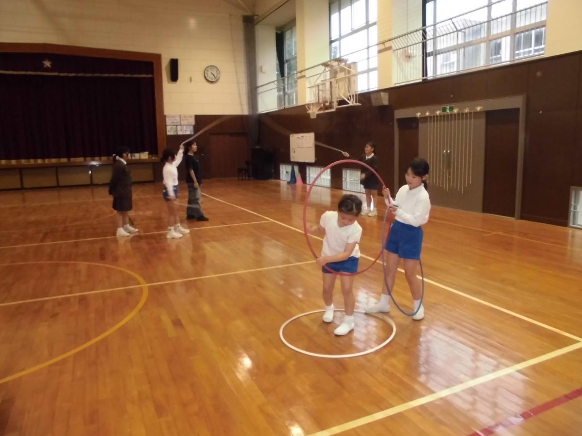 3限目が始まる前に、職員で午後のコンサートの準備を終えると、1・2年生が体育館の半分を使って、元気に体育の学習を始めていました、花丸◎!