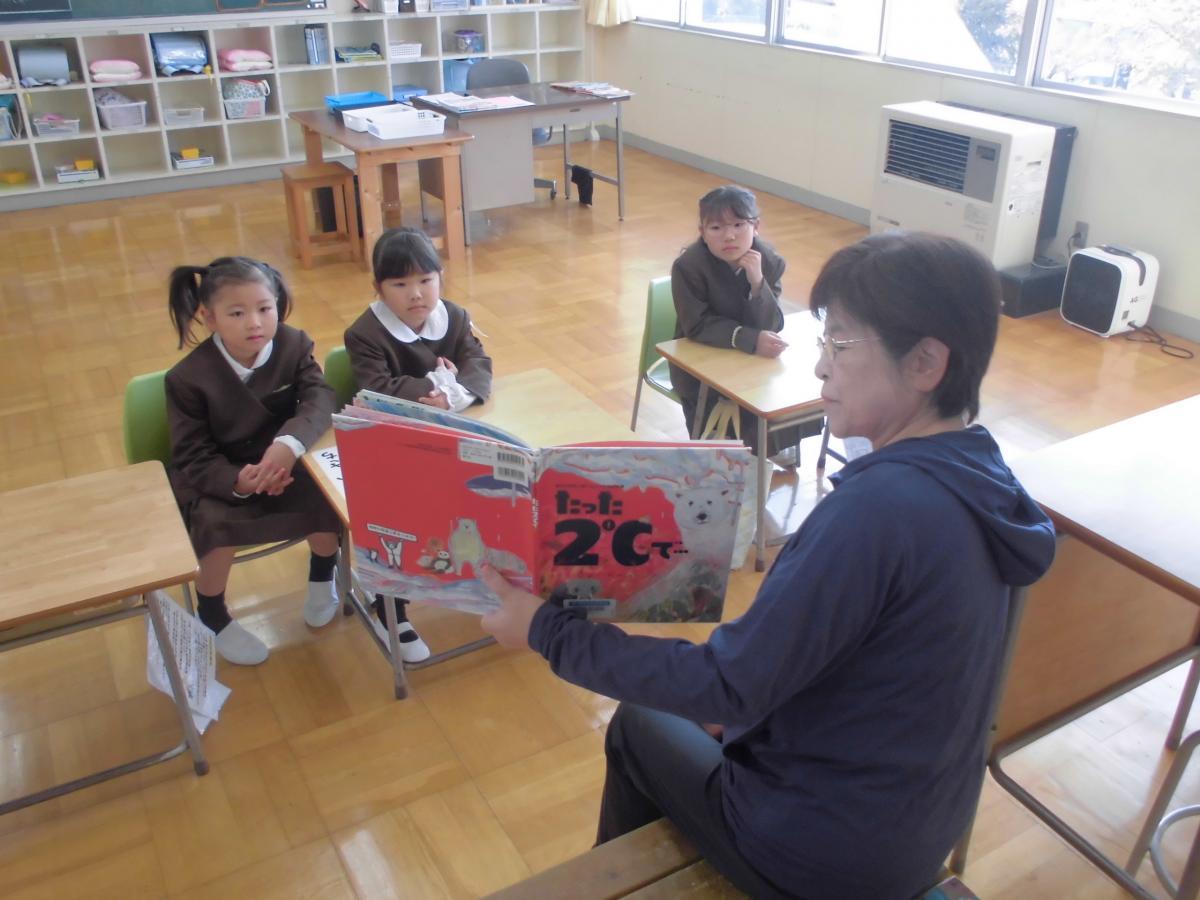 2日(火)、少し晴れ間ののぞくやや肌寒い朝となりました。今日も子どもたちは元気に登校、花丸◎!朝の様子を見に行くと、1・2年生は静かに読書を始めていました。