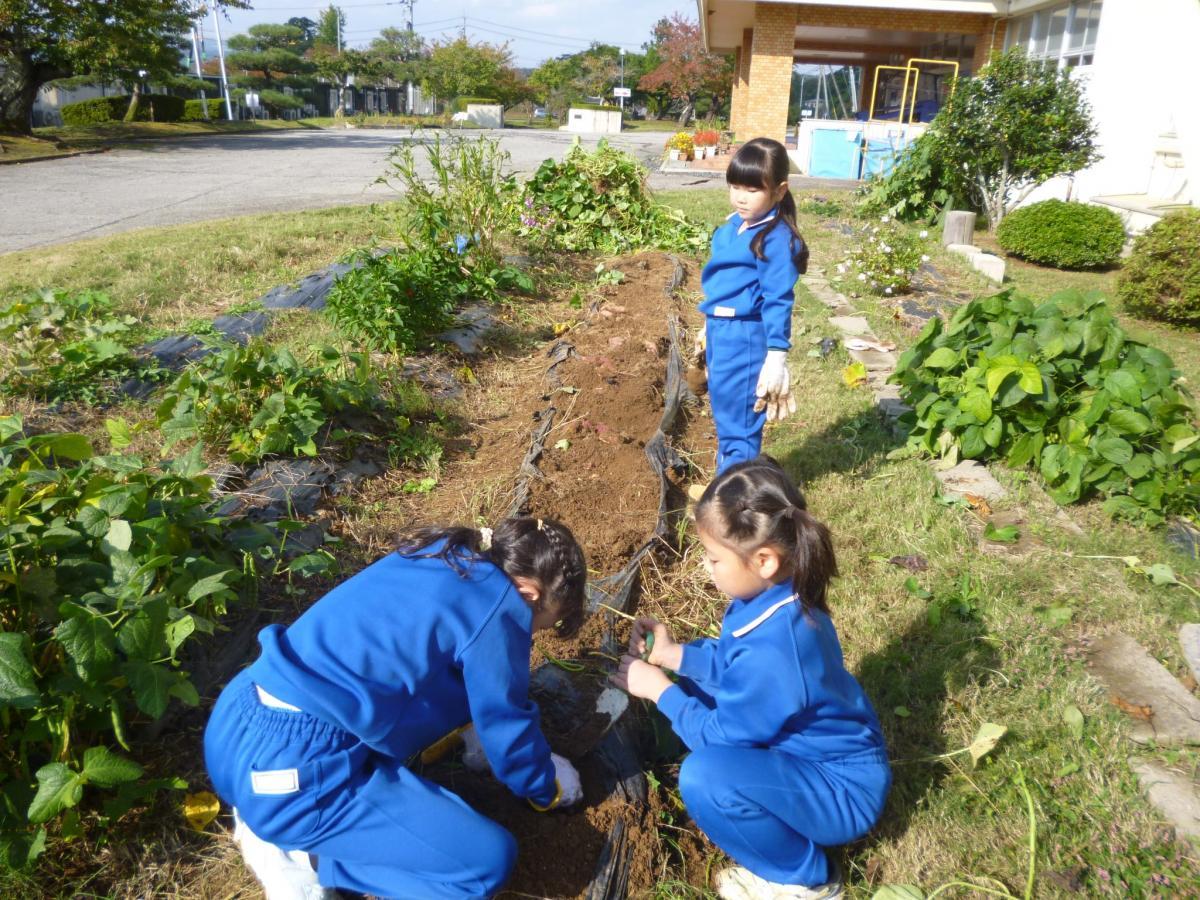 校庭の地球市民学習さんのバラも、地域の方にいただいたシャクヤクも元気に育っています。学校畑の作物も収穫の日が近づいているようです。