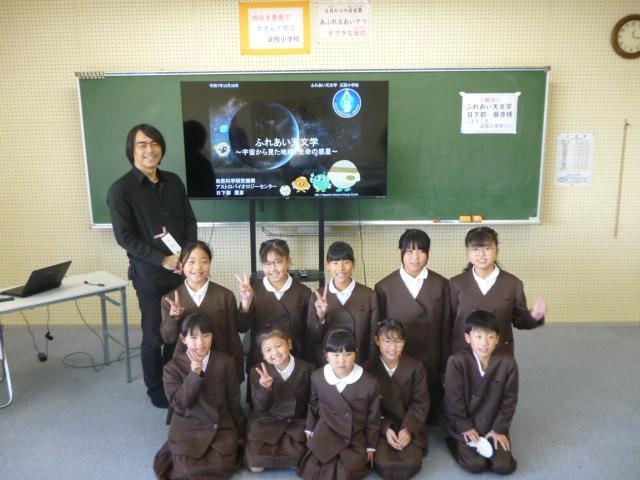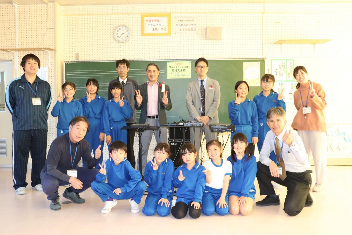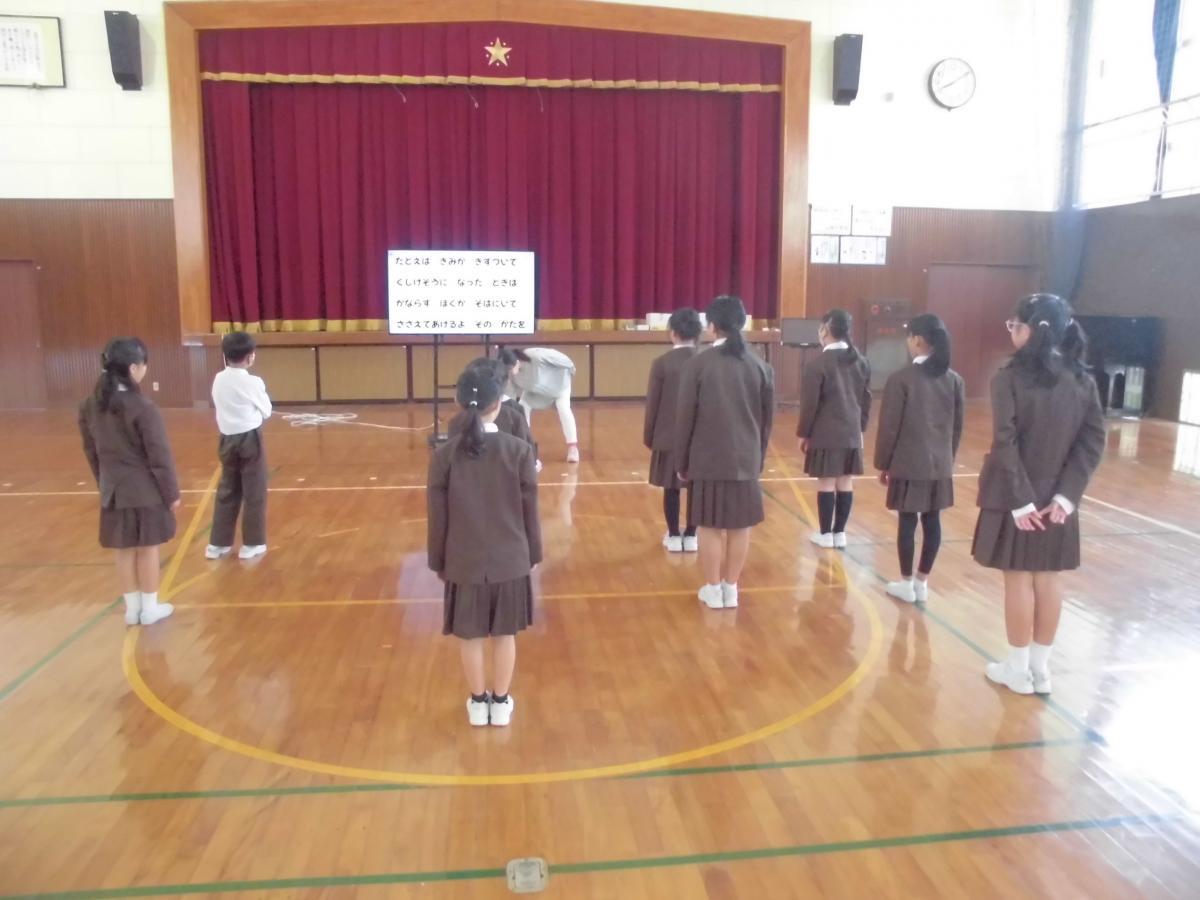 今朝は全校朝会から始まりました。5年生の伴奏による校歌、校長の話、最後は家族の手紙で入選した児童の作品紹介でした。校歌はみんなで気持ちをそろえて元気に歌いました。やっぱり本校の校歌っていいなと感じながら聴いていました、花丸◎!校長の話は大きく2つ。①11月の振り返り、②12月からの合言葉でした。①11月の振り返りでは、11月の様々な活動を写真で振り返りました。今月も様々な支援の方との活動があったことに改めて感謝する時間となりました。②12月からの合言葉は、「あふれるあいさつ まずすぐ行動」です。あいさつは「自分から一往復半」で取り組み、「正院小学校のあいさついいね!」ってほめられるようにみんなでがんばること、「まずすぐ行動」では、誰もやってなくても・思いついたらすぐ・正しいと思うことを行動にうつすことに取り組むことを確認しました。どんな「まずすぐ行動」が見られるか今から楽しみです!
