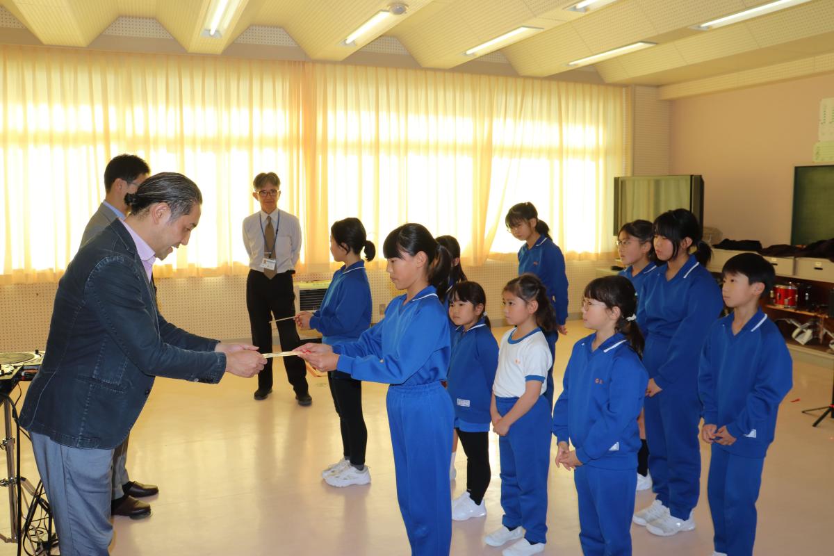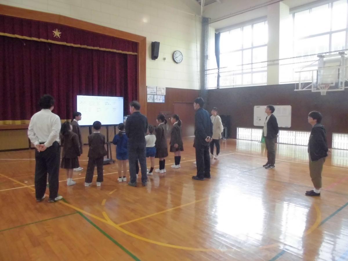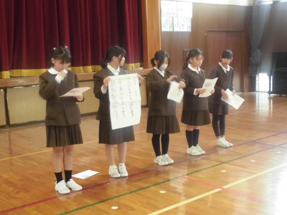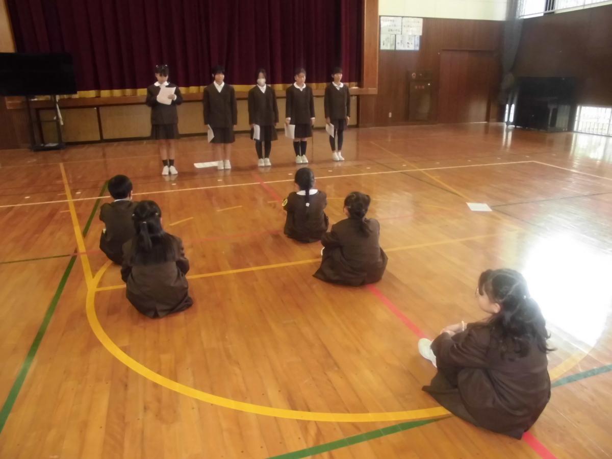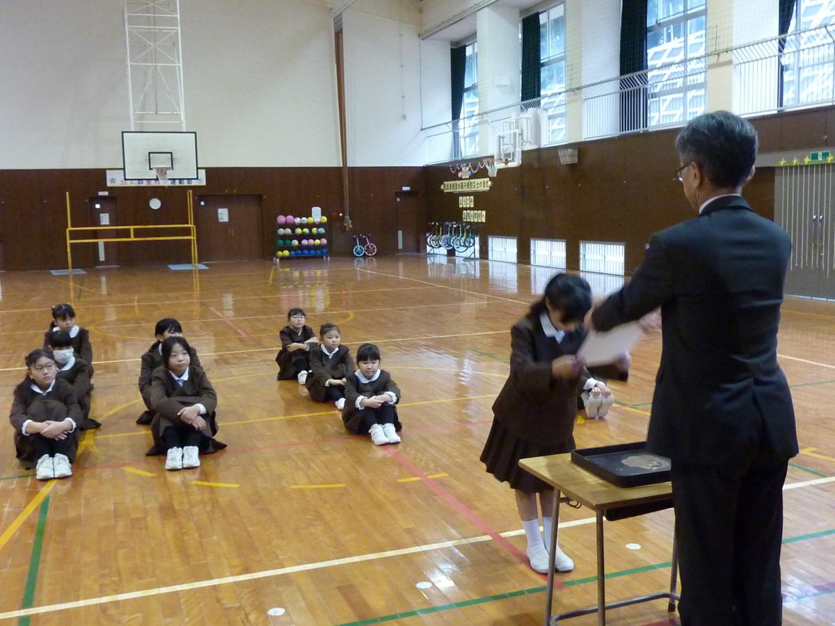 次は後期運営委員会の任命式です。委員長・副委員長・書記の4名を任命しました。委員長となった5年生は、頑張りたいこととして、みんなの意見をまとめて下級生たちに分かりやすい言葉で伝えられるようにがんばると誓ってくれました。下級生の困りごとに耳を傾けながら、よりよい学校にしてくれることを願っています!