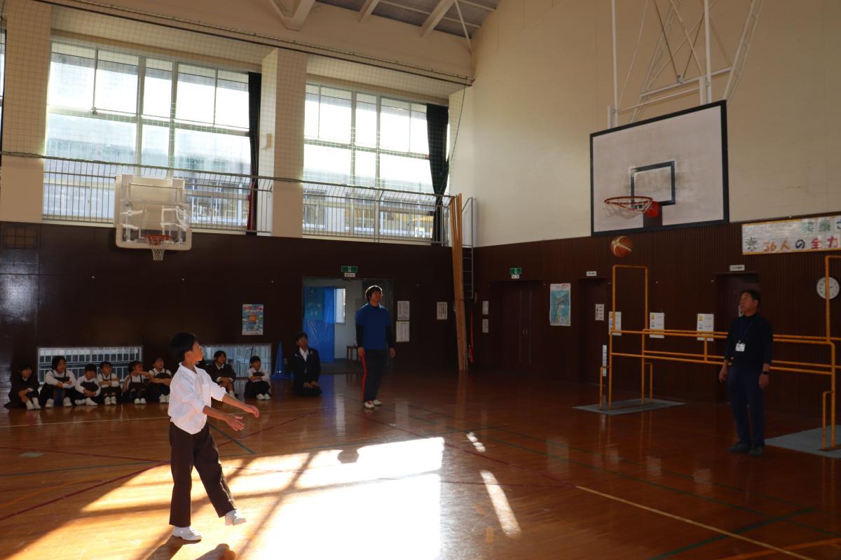 最後は、3チームが交互に「ハンドボールミニゲーム」に取り組みました。ハニービーさんがパスを回して子どもたちにシュートをうたせる戦い。特に低学年はポイントを高くしたので、1~2年生も精一杯取り組む姿が見られました。勝っても負けての最後までゲームを楽しむ様子が見られ、本当に楽しく充実した時間を過ごせたようです。