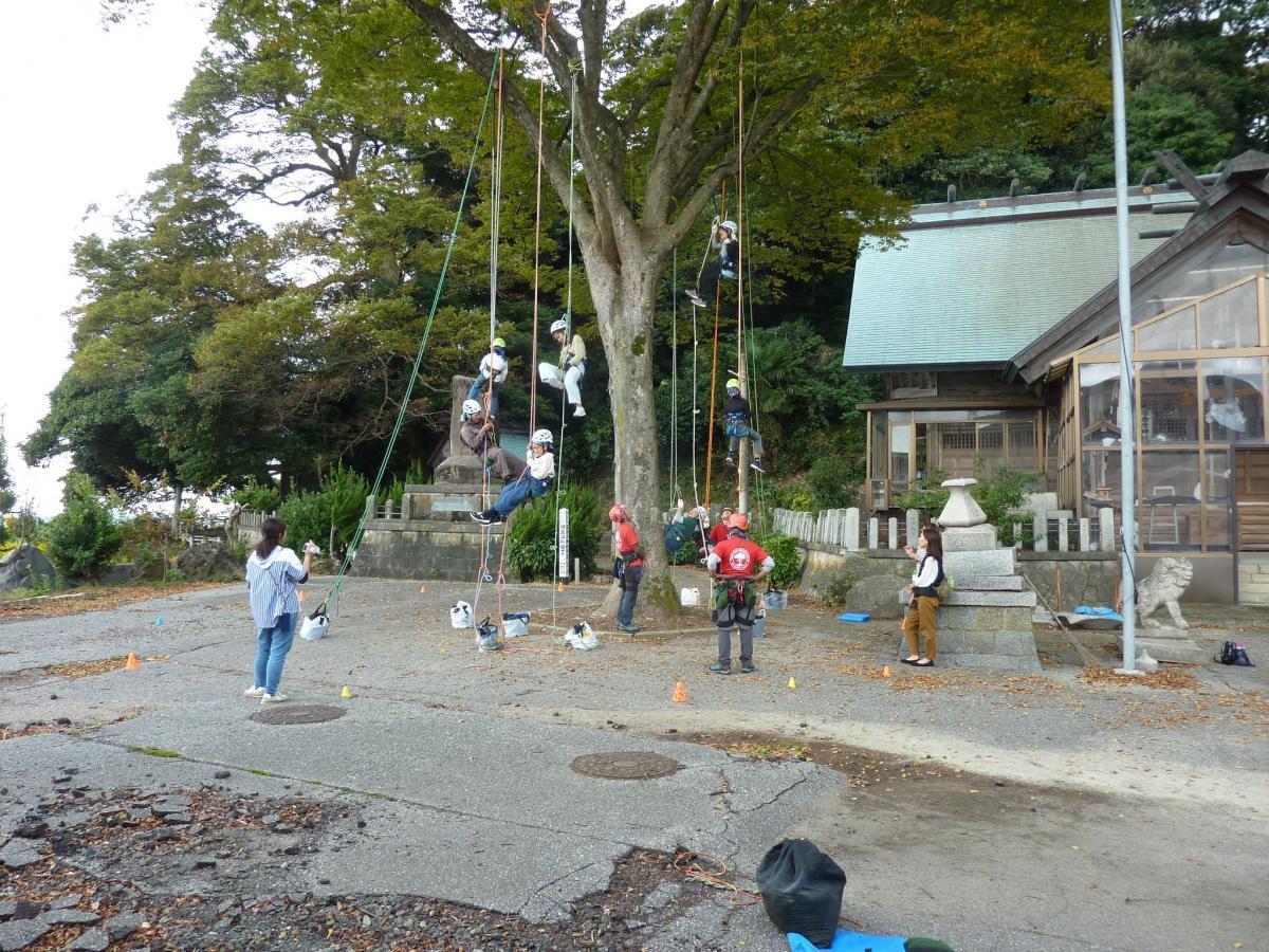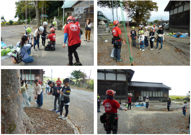 18日(土)、昨年から定期的に方向にご来校いただき、クライミング体験を行ったり、素敵な贈り物を贈って下さったりしているツリークライミングジャパンの皆様が蛸島町にて、ツリークライミング体験を実施して下さいました。本校からも5名の児童が参加し、ロープを使って木に登る貴重な体験ができました。
