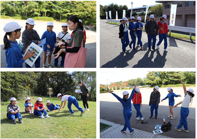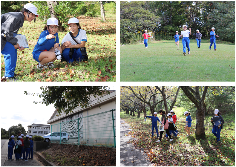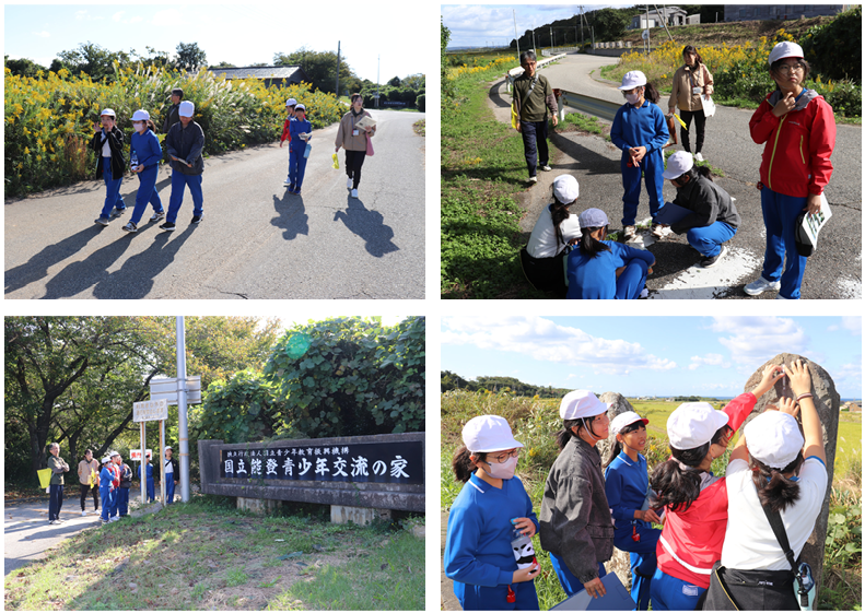 22日(木)、朝食のあとは部屋を出て研修室に荷物を写して、いよいよウォークラリーでした。出発前に、ゴールするためのポイントやコマ地図の見方等の説明を聞き、いよいよ9時25分に出発です。今回は5人1グループでゴールを目指すこととなりました。10数か所のチェックポイントをコマ地図を見ながら周り、全部で問のクイズに答えてのゴールです。チェックポイントごとにみんなで考え相談し、クイズの答えを確認しながらすすめていました。一回り5キロメートル少々のコースでしたが、秋晴れの天候の下、時々見える海の景色を味わいながら、11時30分に笑顔でゴールできました、みんな最後までよくがんばりました、花丸◎!