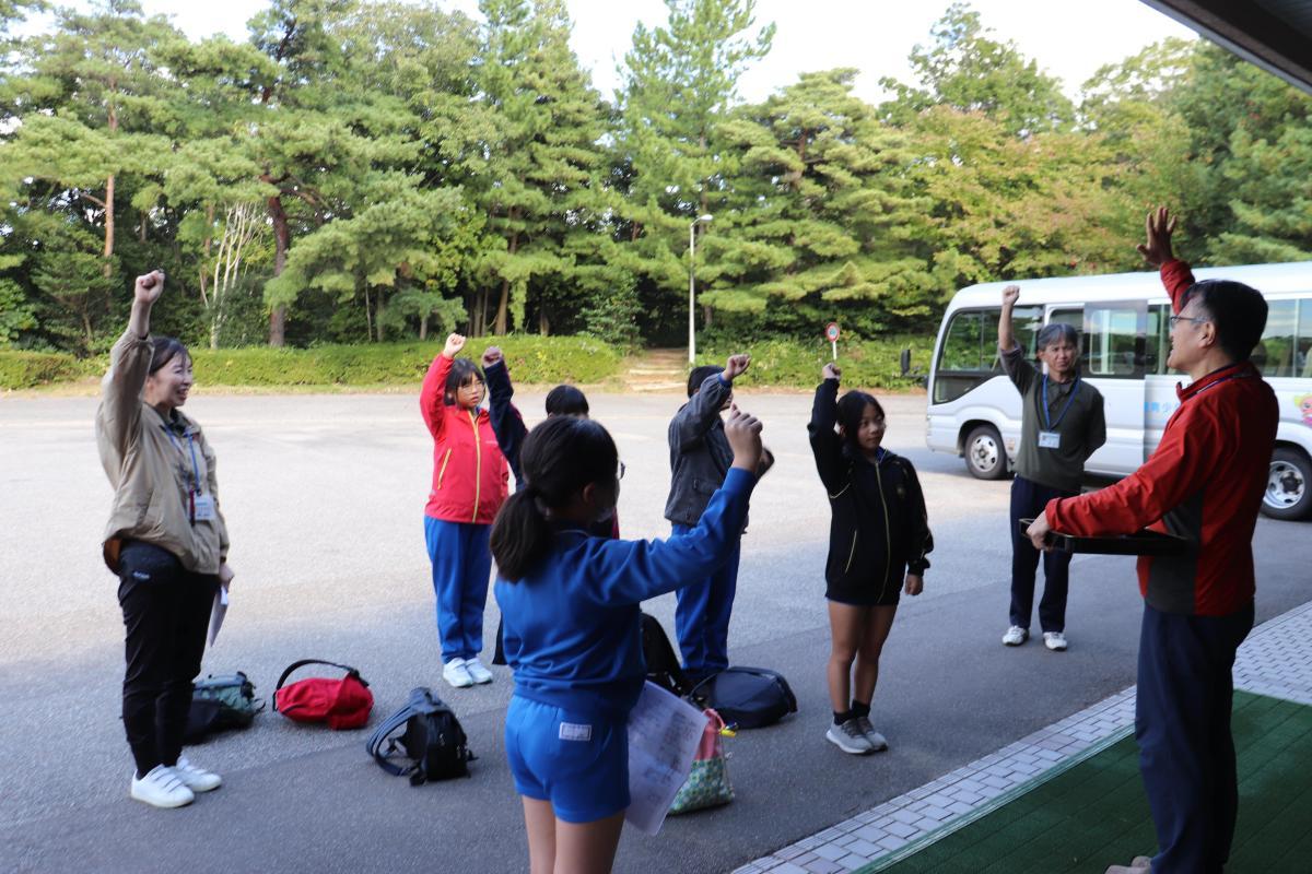 最後は自然の家の前で出所式です。所長さんから、入所時にお話しいただいた自然の家での目標を確認していただき、特にチャレンジの大切さについて確認していただきました。児童の代表からは、2日間の楽しかった感想とお礼を伝えることができました。国立能登青少年自然の家の皆様、本当に楽しい時間をありがとうございました、感謝!