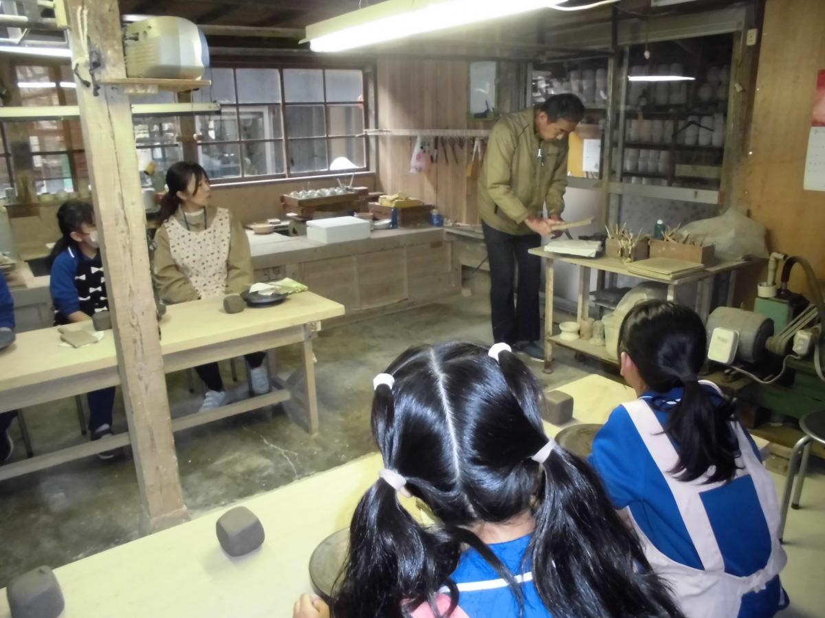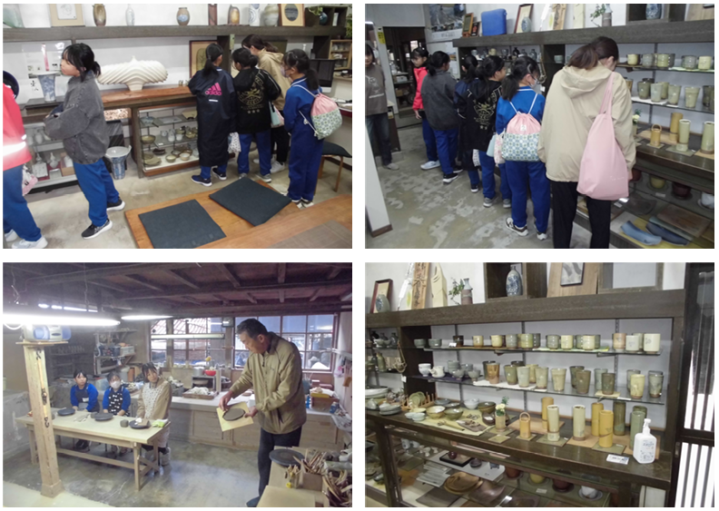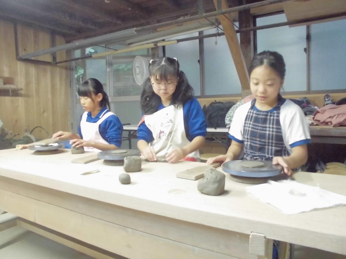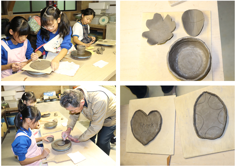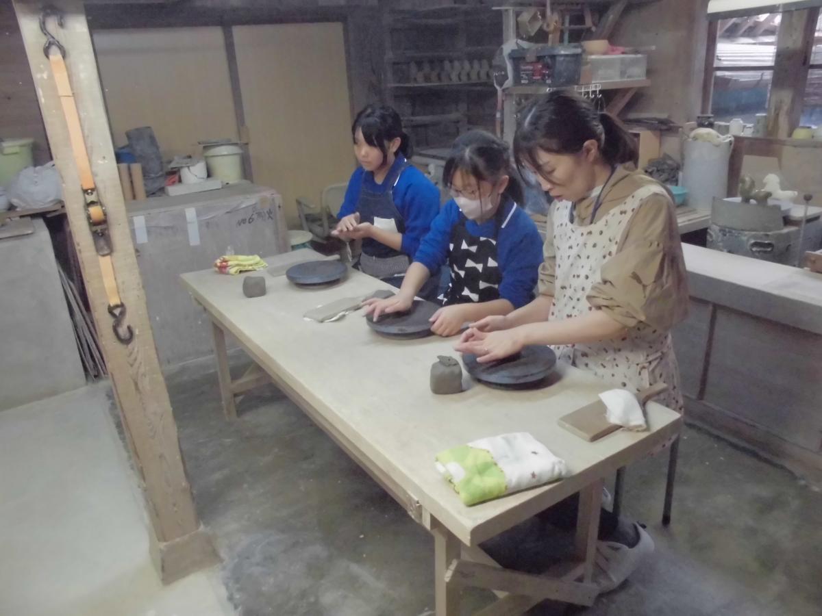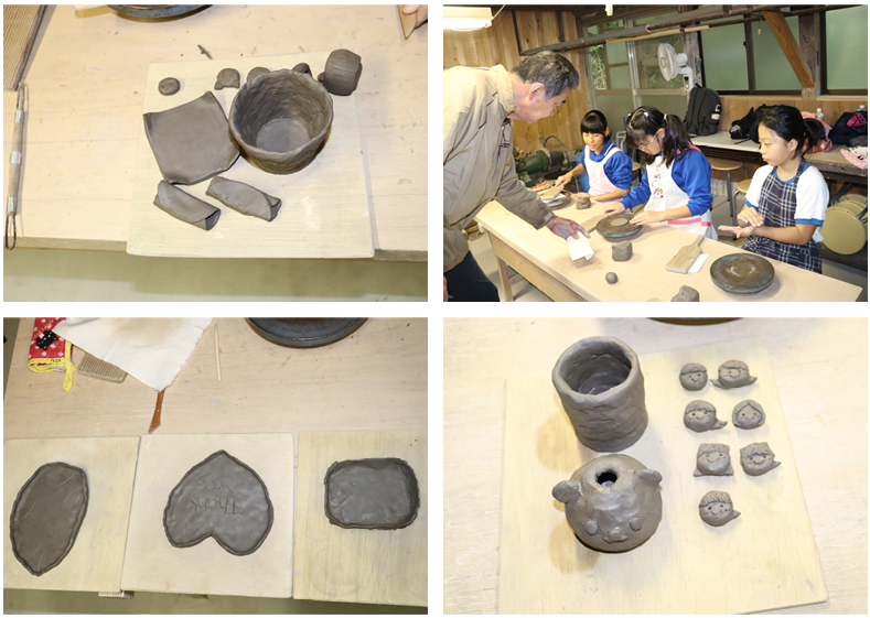 午後は手びねり、粘土で思い思いの焼き物づくりです。気多大社近くで約80年作られている大社焼のお店にでかけて作品作りに取り組みました。約2時間半の時間の中で、カップやお皿など思い思いに作品作りに熱中しました。