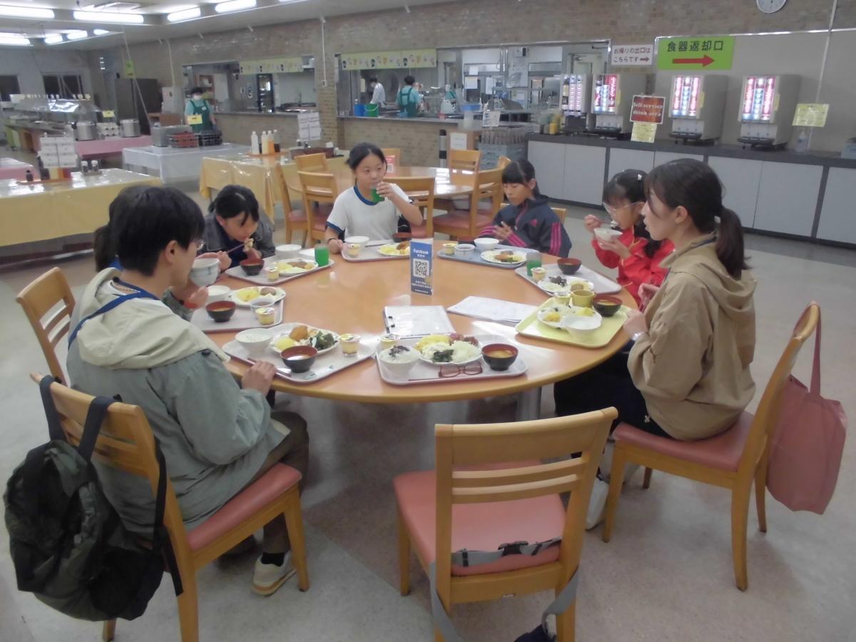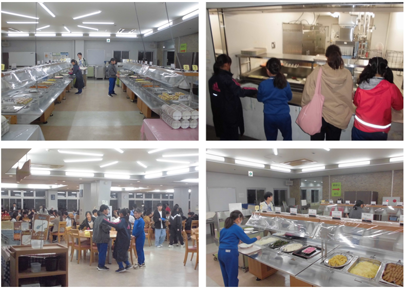 その後夕食。今回はバイキング形式。思い思いに好きなおかずを好きなだけ食べていました。お昼より自分でおかずやその量を選んだだけあって、みんな手際よく短い時間にすべて食べていました。