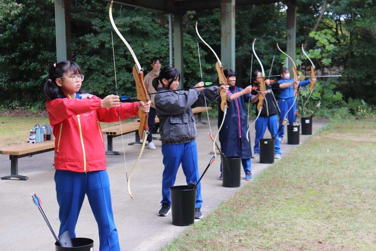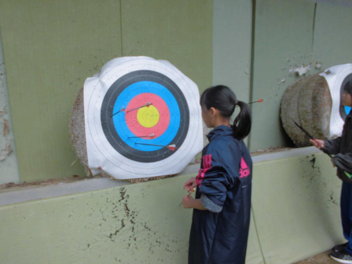 その後は早速1つめのプログラム「アーチェリー」に挑戦です。やや肌寒い気温でしたが、温かい上着を脱いで取り組む子も。まさに自分なりに精一杯チャレンジする姿でした、花丸◎!