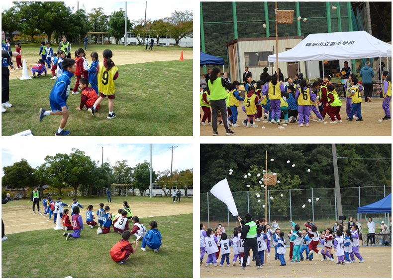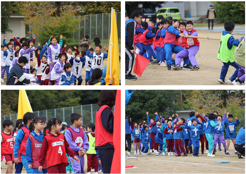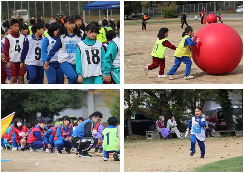 玉入れ、台風の目、つなひき、リレーの各種目を低学年・高学年に分けて行いました。どの種目も、子どもたちは心を1つに合わせて精一杯取り組む姿が見られました。