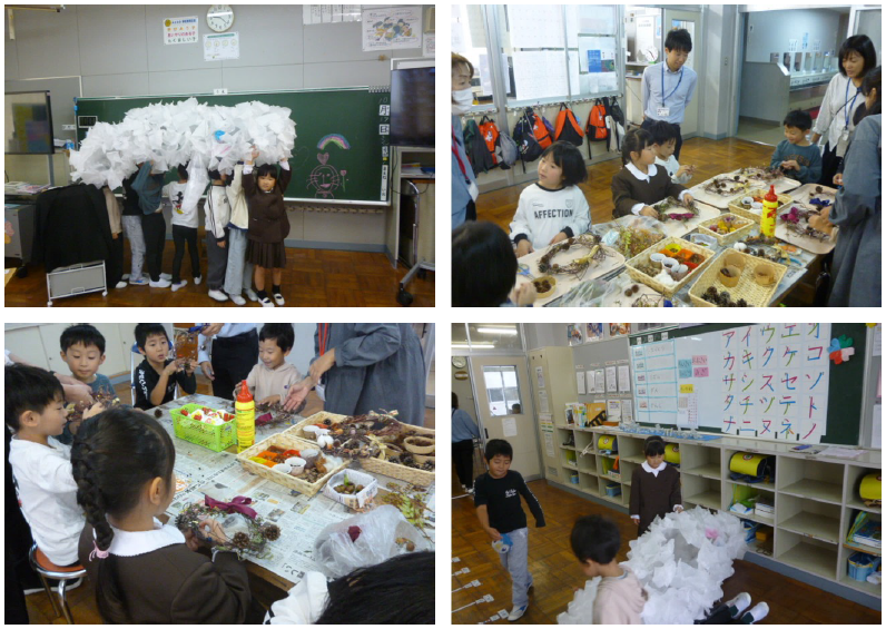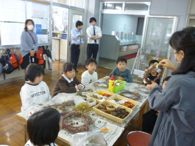1~2限目に、1年生はみさき小に出かけて、生活科の集合学習を行いました。今日は、本校の保護者を講師として、リースづくりに挑戦しました。本校の1年生は、他校の1年生と一緒に楽しみながらリースづくりを楽しんでいました、花丸◎!西本さん、丁寧なご準備とご指導、本当にありがとうございました!