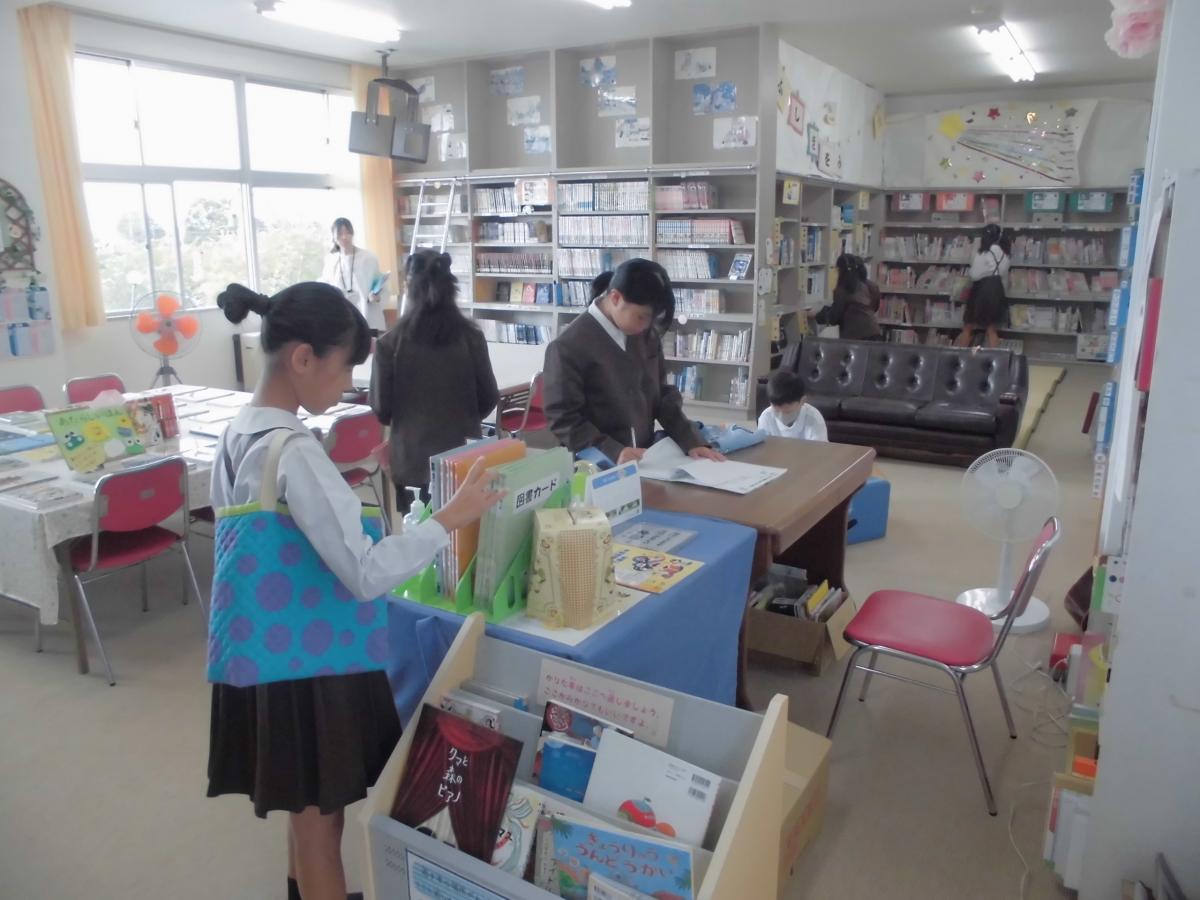 金曜日の朝は図書室で朝読書。1・2年生は新しく借りる本を決めて、静かに読書に取り組む姿が見られました、花丸◎!