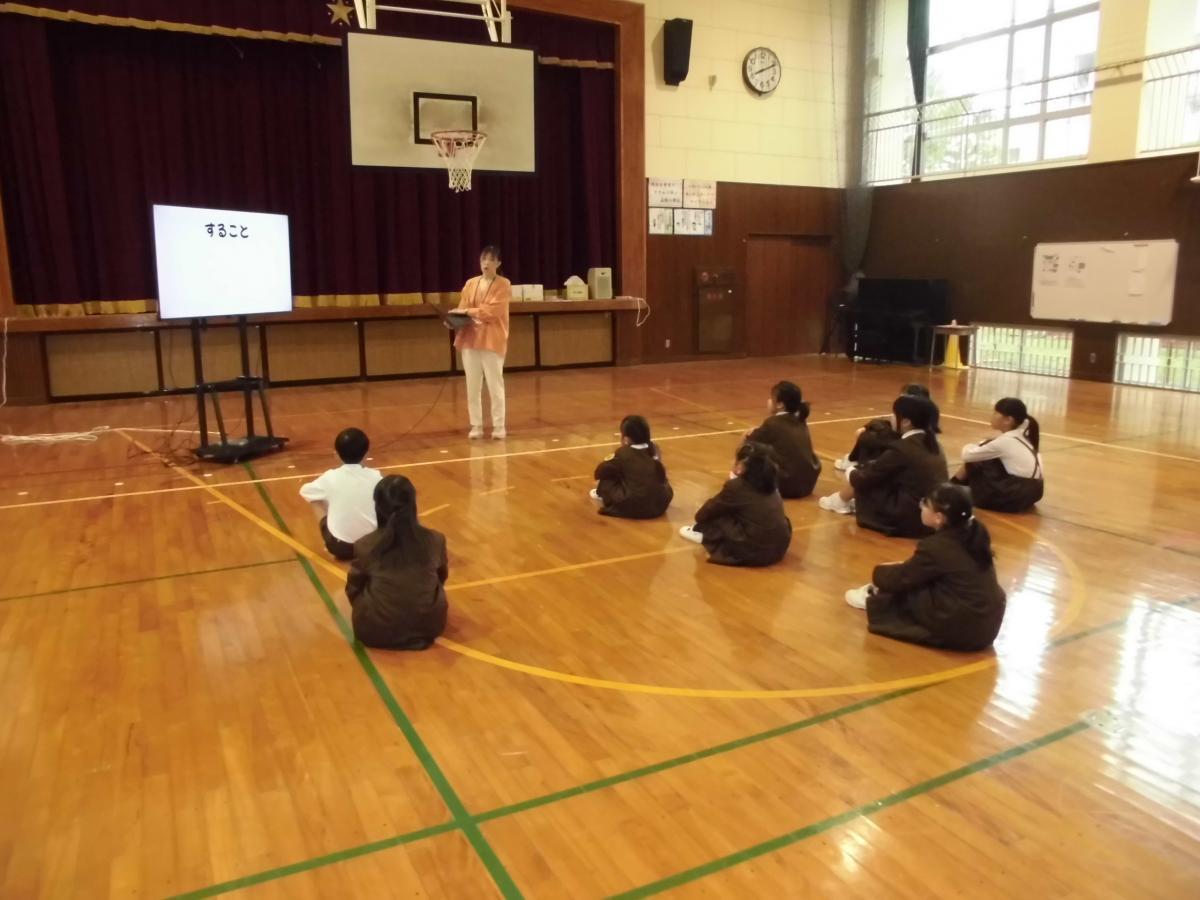 今朝も臨時集会、11月に行うふれあい集会に向けて、みんなで協力して準備をすすめるための集会です。ふれあい集会のねらいと、今年度の内容をみんなで確認しました。大きな変更点は、今までは学級ごとの出し物を行ってきましたが、今年度は趣向を変え、児童の『とくぎじまん』を行うことにしました!初めての取組なので、子どもたちは何をするの?という雰囲気でしたが、その後先生方から「バドミントンが得意」「鳴き声で野鳥の名前をあてます」「どらえもんに出てくる人物の声まね」を披露すると、自分にもできそうという表情に変わっていました!