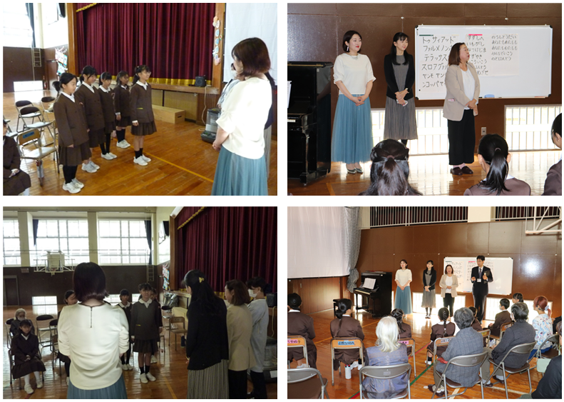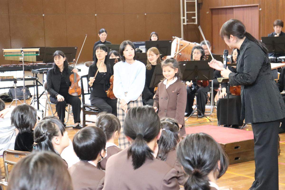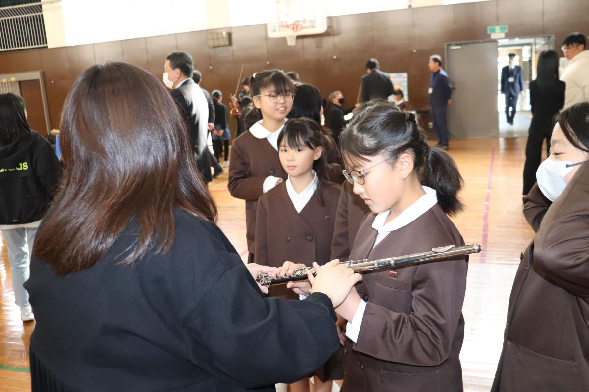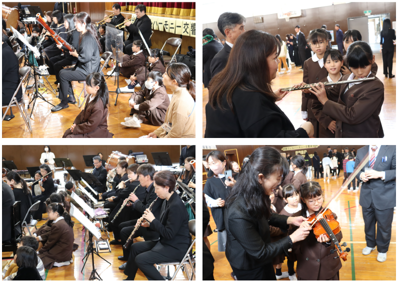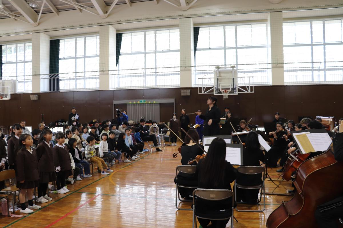 みさき小の皆さんにも声をかけてご来校いただき、一緒にオーケストラや楽器、クラシック音楽の歴史について学びました。今日ご来校下さったのは、4名の演奏家の皆さんと2名の事務局の方々でした。約90分楽しく学ぶことができました。特に印象に残ったのは、バイオリンを解剖した1つ1つの部品に触らせていただいたことや、バイオリンの弓が本当に馬のしっぽの毛でできていることを見せていただいたことです。今回の学びで、子どもたちはより一層オーケストラや楽器について関心を持つことができました!