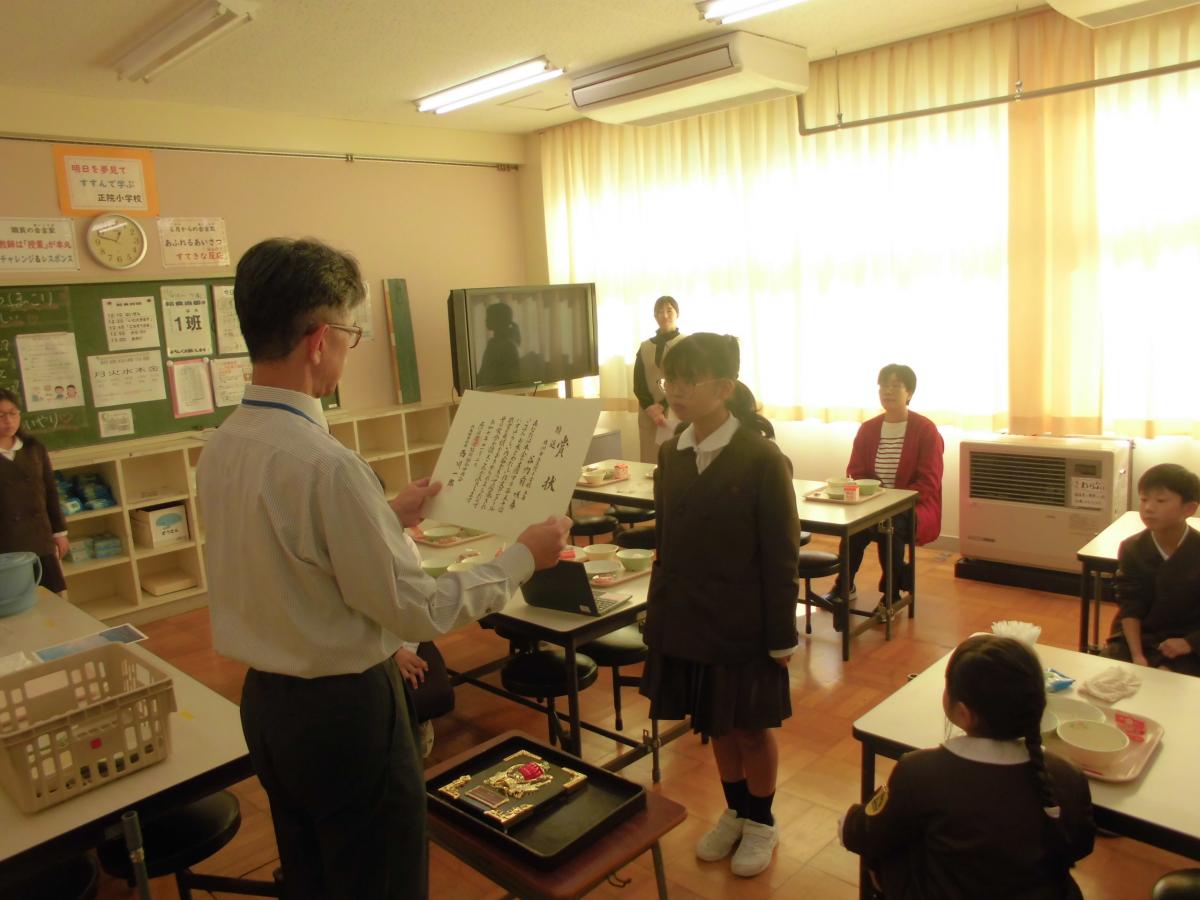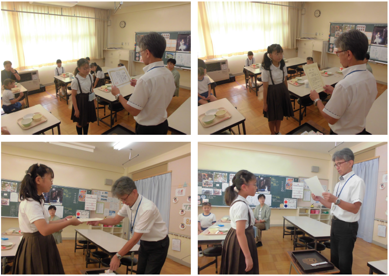 いただいた賞は、給食時にも披露しました。書道で賞をいただいた5年生も一緒に披露しました。5年生全員で応募したコンクール。立派な参加賞もいただきました!