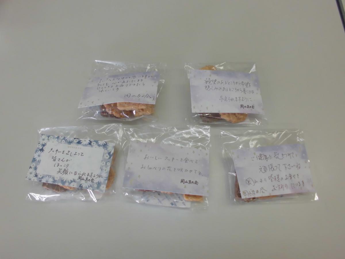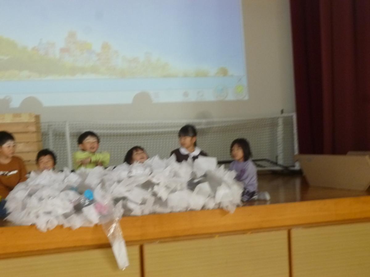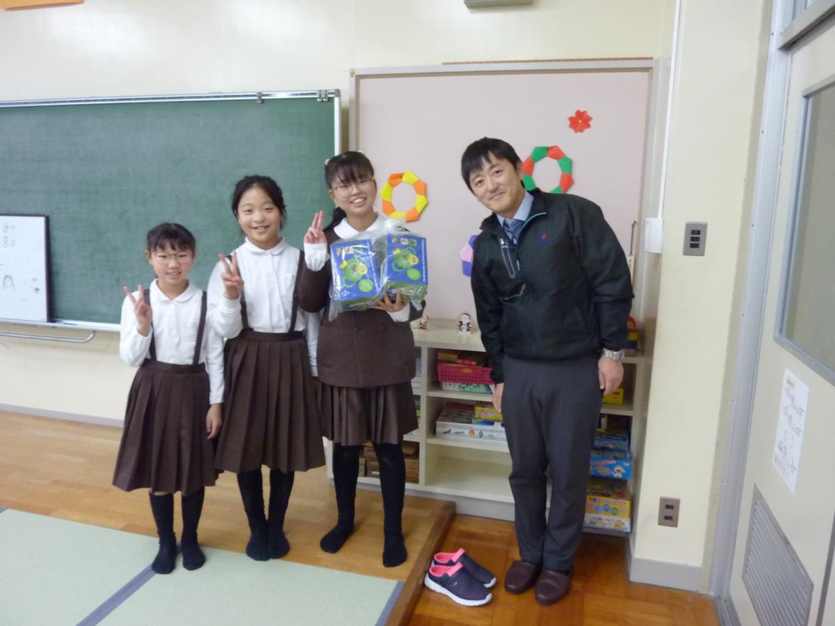 給食時には、素敵な贈り物を子どもたちに配りました。
