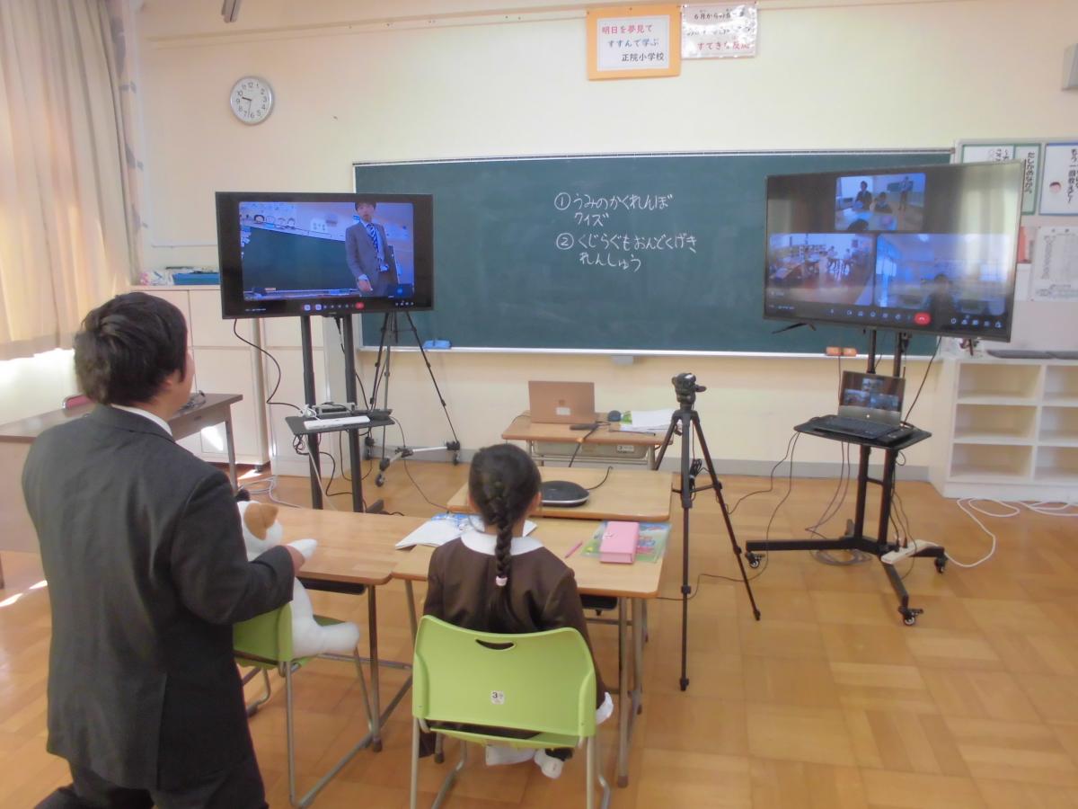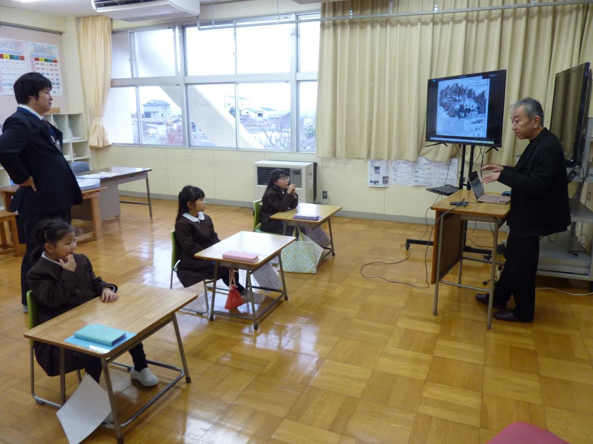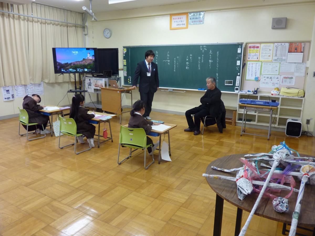 5限目、1・2年生道徳でゲストティーチャーをお迎えしての授業でした。「まちのたからもの」である、正院町のお祭りについて、正院町の宮司・高山さんをお招きしてお話を聞きました。1・2年生が知らなかった様々なお祭りのお話を聞いて、子どもたちはしっかり耳を傾けて聞いたり、質問したりできました。