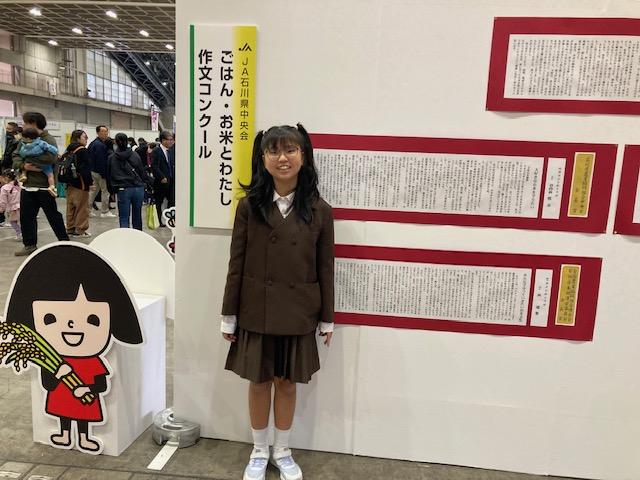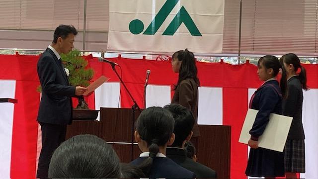 最後は子どもたちからお礼の出し物です。みんなで言葉で感謝を伝えた後は、歌をプレゼント。校歌とビリーブをみんなで歌いました。次は、ご飯・お米とわたし作文コンクールで入選した5年生が作文を紹介してくれました。我が家はお米農家であること、令和のこめ騒動で家族は大変だったが、日本人にとってお米が大切であること、そんな大切なお米についての自分の思いを、力強く書かれた素敵な作文でした。