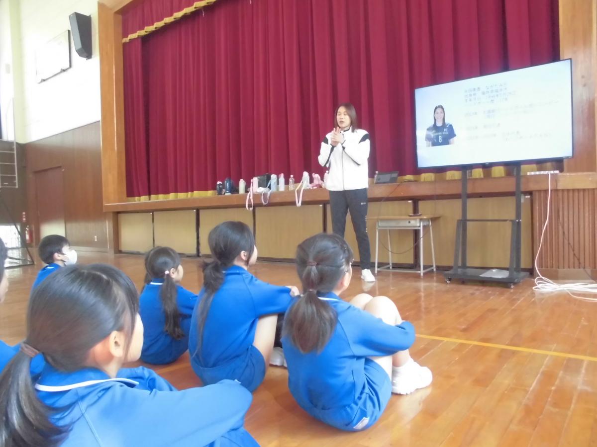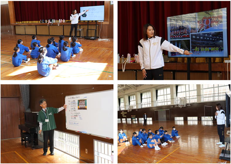 閉会式では、児童全員が感想を伝え、お礼のしおりを渡すことができました。最後に記念写真を撮って、選手の皆さんをお見送りしました。