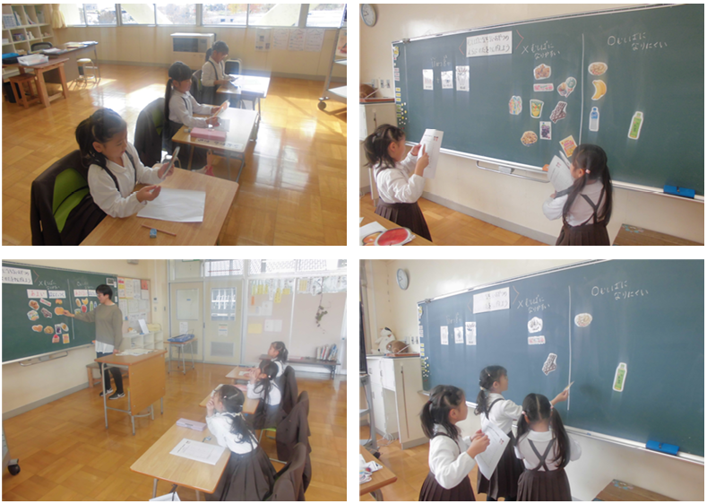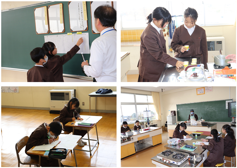 4限目の様子を見に行くと、1・2年生は生活、おもちゃ作りに取り組んでいました。3・5年生に楽しく遊んでもらおうと、真剣に遊び道具を作っていました、花丸◎!3・5年生は家庭、3つの栄養素を分類する学習でした。きっちり書かれたワークシートが花丸◎!