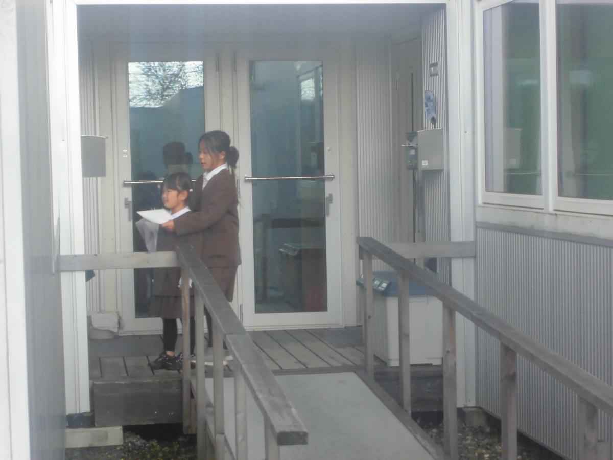 4日(木)、今朝は初雪が降り、半分白い世界となりました。吹き付ける風も冷たく、いよいよ本格的な冬がやってきました。それでも子どもたちは元気に登校してくれました。