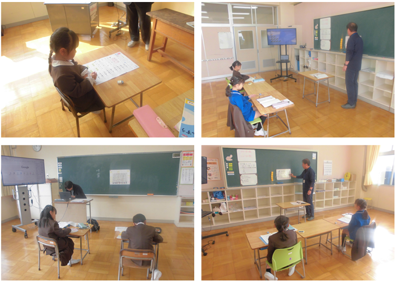 4限目の様子を見に行くと、1・2年生は算数、1年生は時計の読み方の復習に取り組み、2年生は九九・四の段の仕組みについて説明する姿が見られました。どちらも最後まで書こう、説明しようとする姿が見られました、花丸◎!