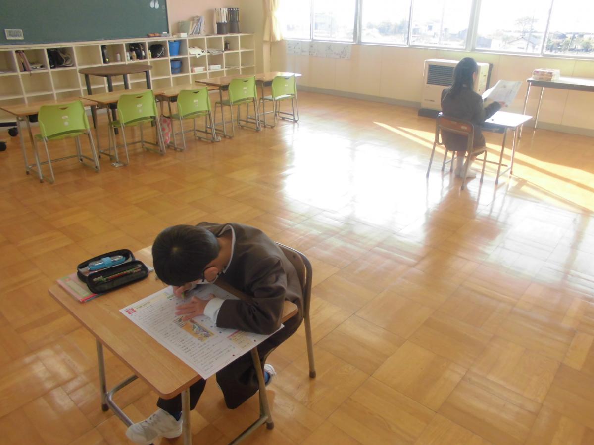 5年生は今までの学習の振り返り問題に取り組んでいました。本校では、定期的に学力調査問題を使用して、本校の子どもたちの学力を検証しています。子どもたちは問題をよく読み、じっくり考え丁寧に解答する様子が見られました、花丸◎!