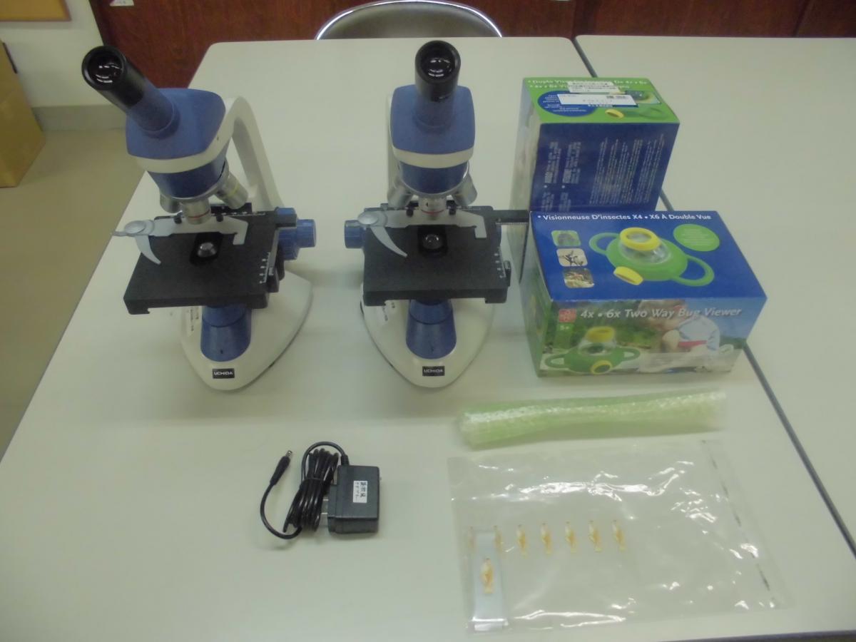 ◇大阪府・大澤典昭様…9月9日に理科復興支援授業を行って下さった、ケニス株式会社の大澤様が、個人的に昆虫観察器(ダブルスコープ)を2台贈って下さいました。