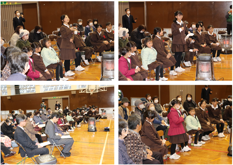 最後は家族の手紙で入選した児童の作品紹介、3年生児童が発災後おかあさんと離れ離れで生活していたが、家の修理が終わり、また一緒に生活できる喜びを伝え合う手紙でした。少しずつ復興していることの幸せを感じる素敵な手紙でした、花丸◎!