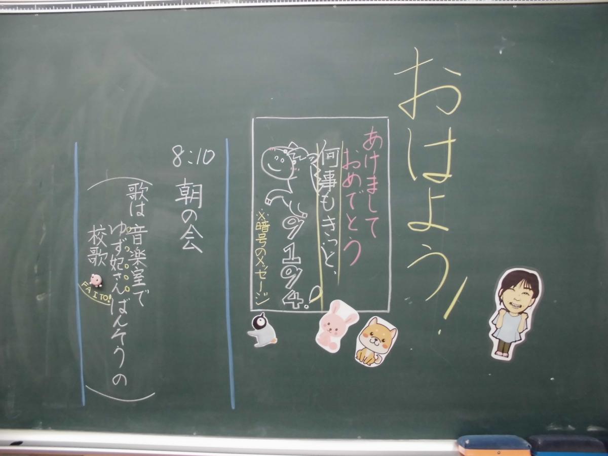 16日(火)、今朝も朝日がさす気持ちのよい朝となりました。日中は雨が降ったり止んだりする予報。玄関には昨日から校務員さん手作りの門松が置かれ、いよいよ学校も年始モード。子どもたちはどのように作られているのか興味津々。そんな中、今日も子どもたちは全員元気に登校してくれました、花丸◎!