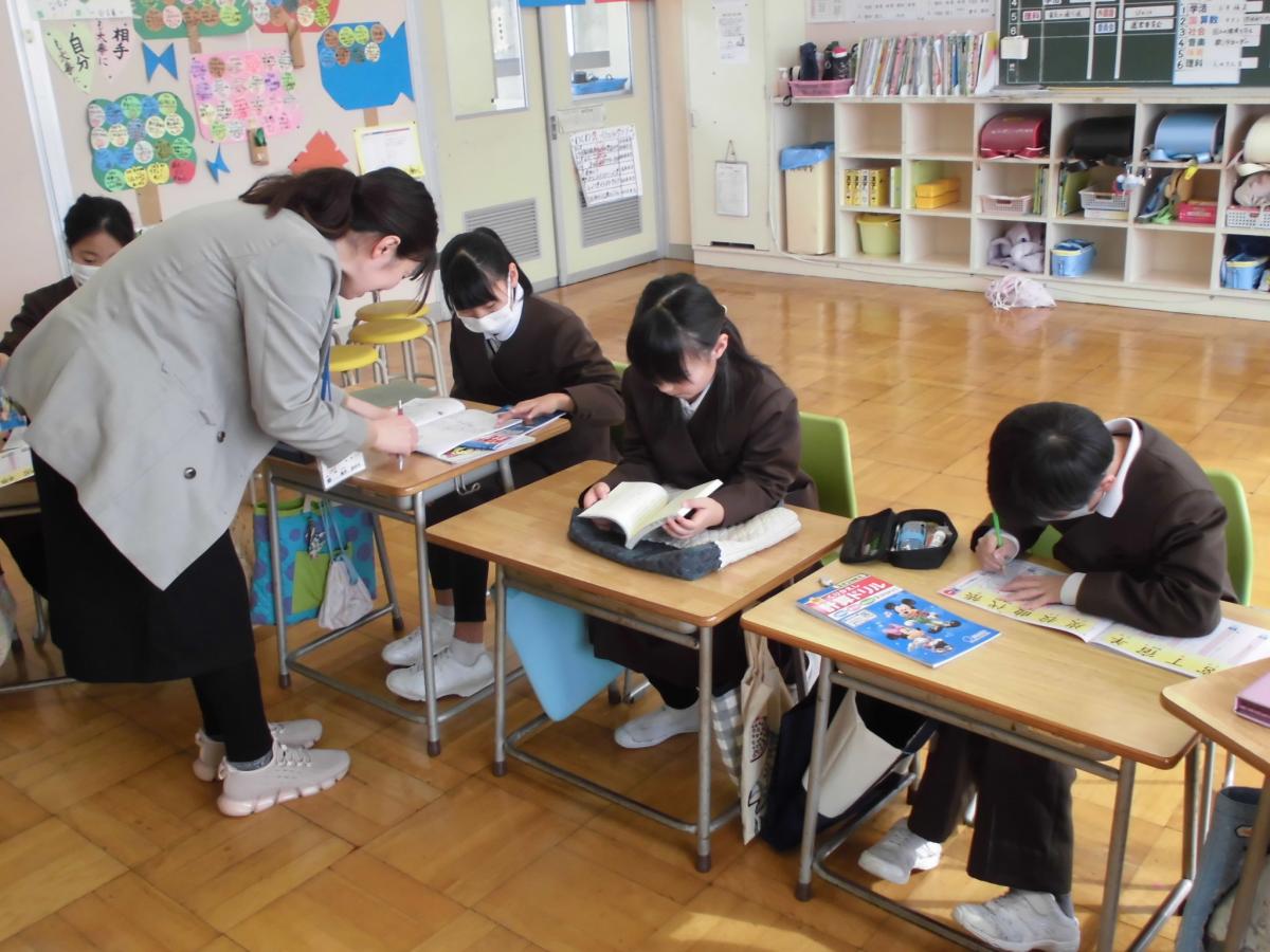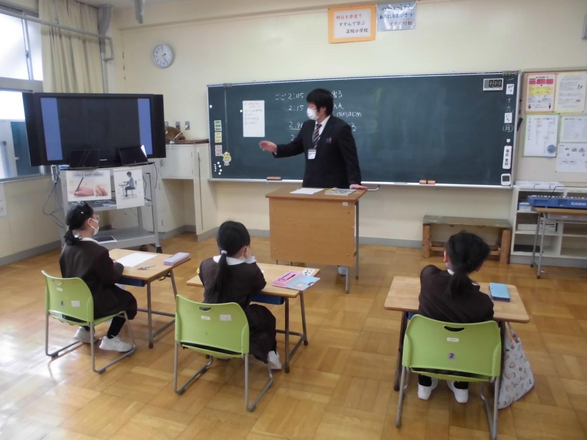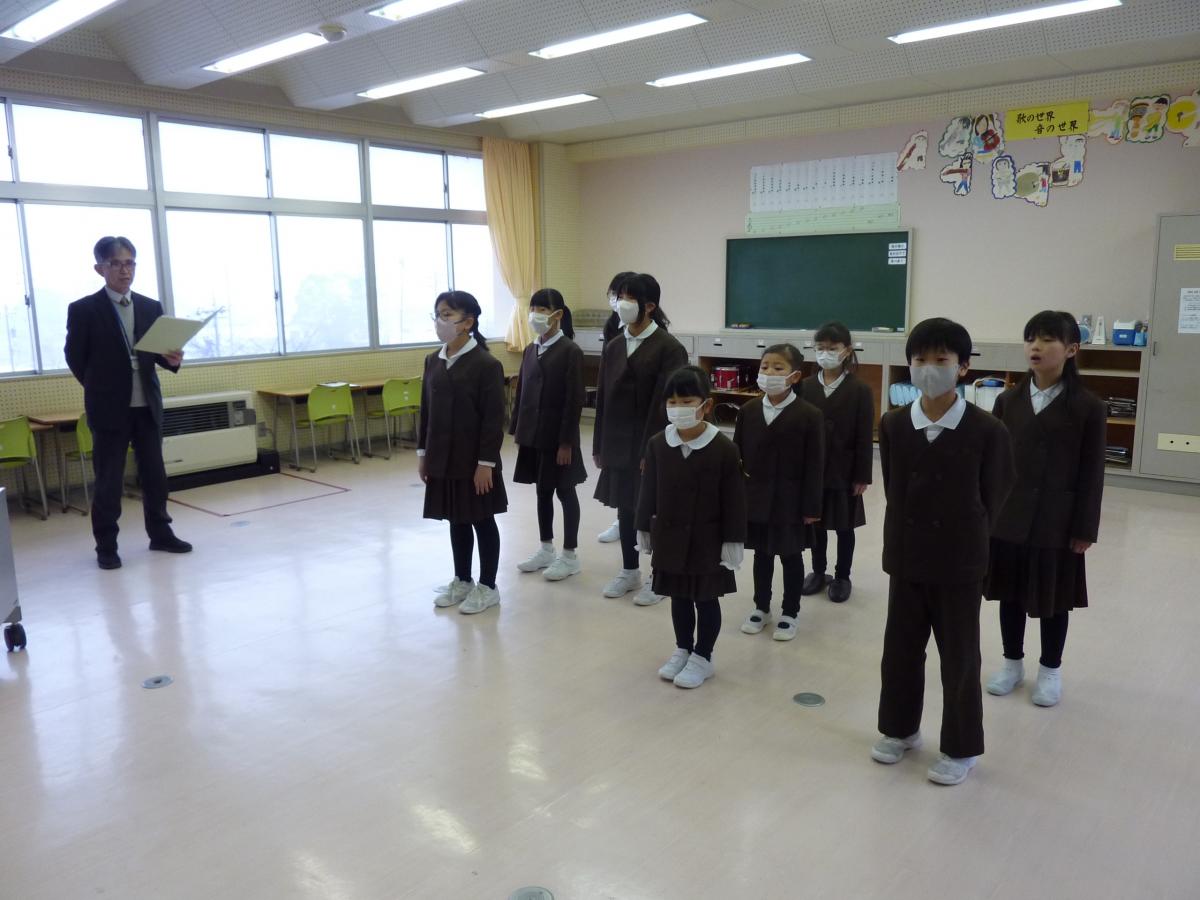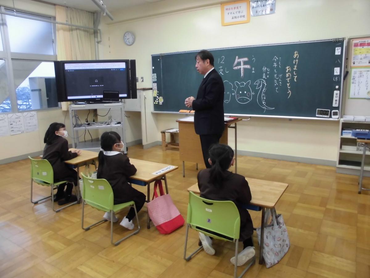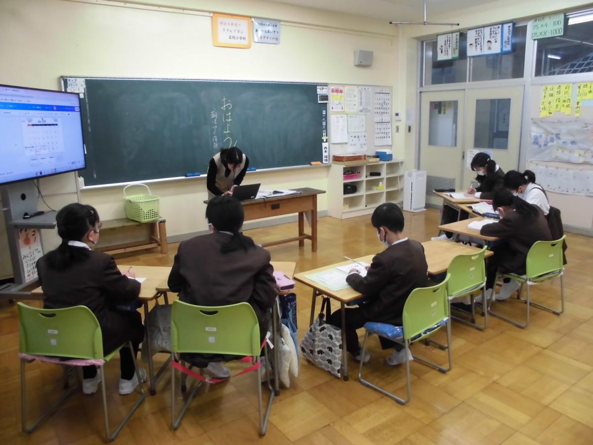 5限目の様子を見に行くと、3・5年生は体育、最初にランニングをして、準備体操に取り組む様子が見られました。冷える体育館に響く子どもたちのかけ声に元気をもらいました、花丸◎!1・2年生は道徳「生きること」について考えていました。「ぼく」という教材を使って、生きることを喜び 、生命を大切にしようとする心情を育てる授業でした。生きることについて自分なりに考え、発言する姿が見られました、花丸◎!