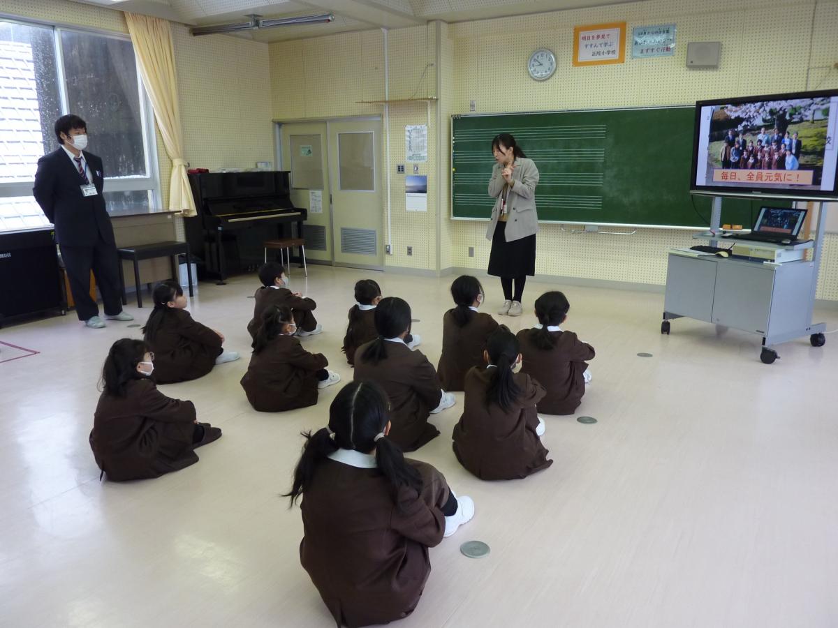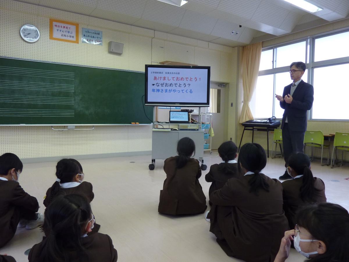 ②校長先生のお話では、3つのお話をしました。⑴夢、⑵12月からの合言葉、⑶1月のふりかえりでした。⑴夢では、夢って何?というお話をおさらいしました。大人になってからの夢もあるけど、目の前にある「できるようになりたいこと」も大切と話しました。また郷土力士としてがんばっている、炎鵬関の生き方について話しました。以前は幕内の最小力士として活躍していた炎鵬関。脊髄損傷という大けがを乗り越えて、今幕下で頑張っている姿を話しました。子どもたちは真剣に聞いてくれました、花丸◎!